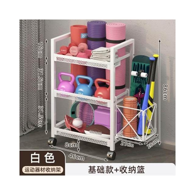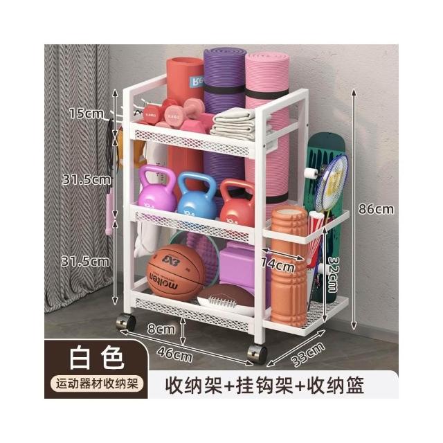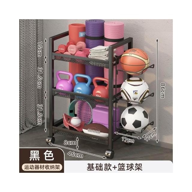 置物架 收納架 家庭健身器材收納架 運動健身器材收納架家用籃球架壺鈴啞鈴架泡沫軸瑜伽墊置物架帶輪