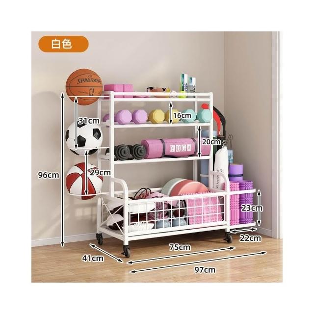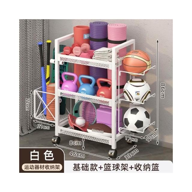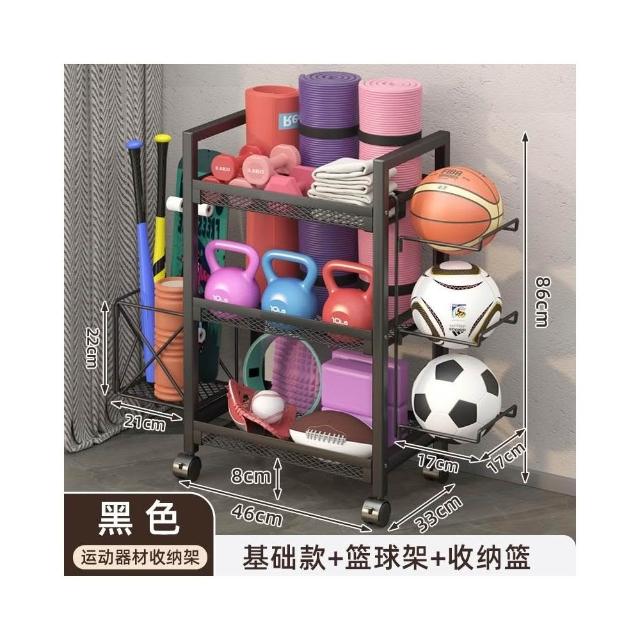 置物架 收納架 家庭健身器材收納架 運動健身器材收納架家用籃球架壺鈴啞鈴架泡沫軸瑜伽墊置物架帶輪