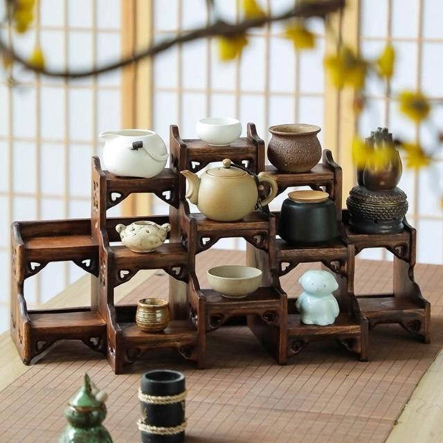 中式桌麵博古架實木茶壺展示架紫砂壺擺放架子茶具茶杯收納置物架