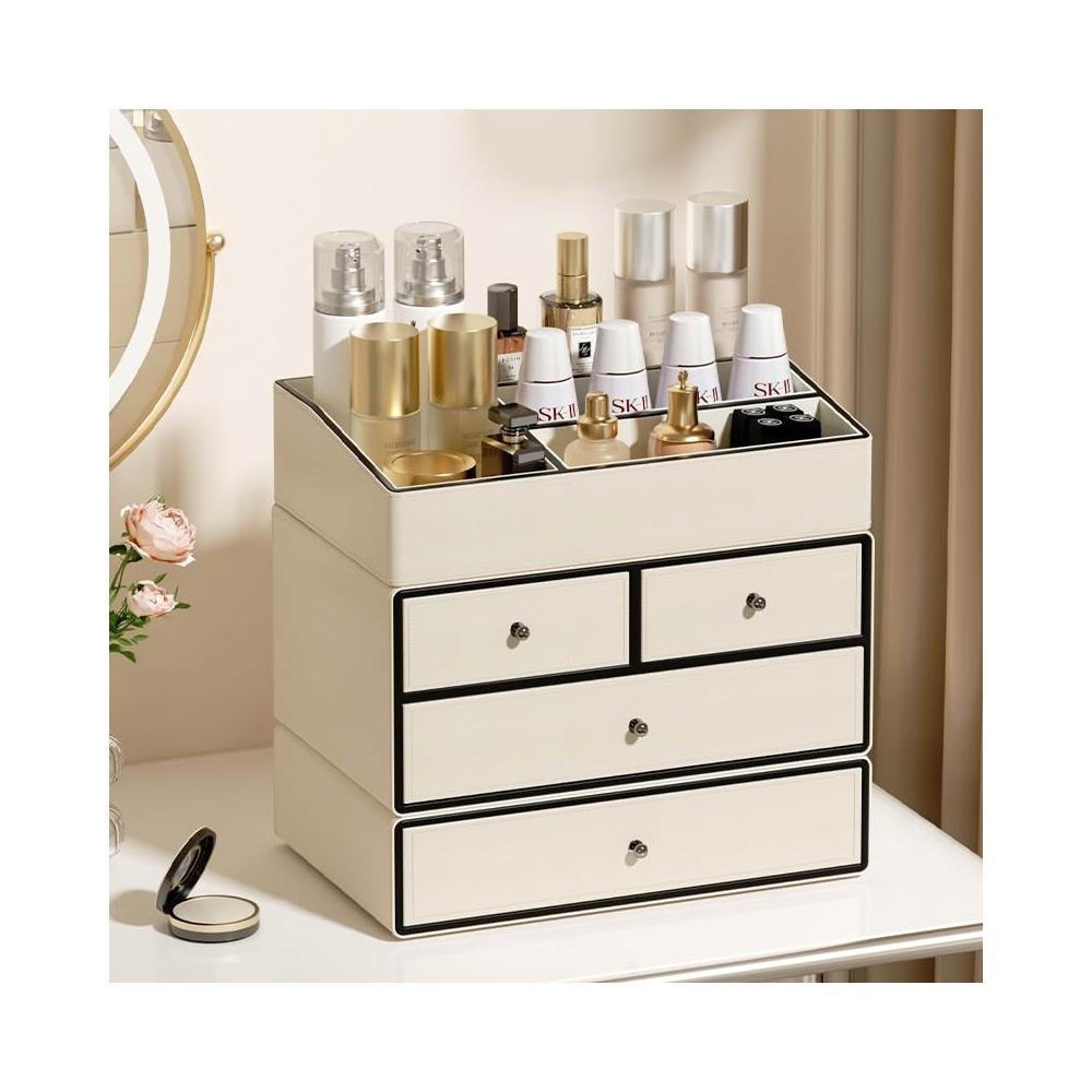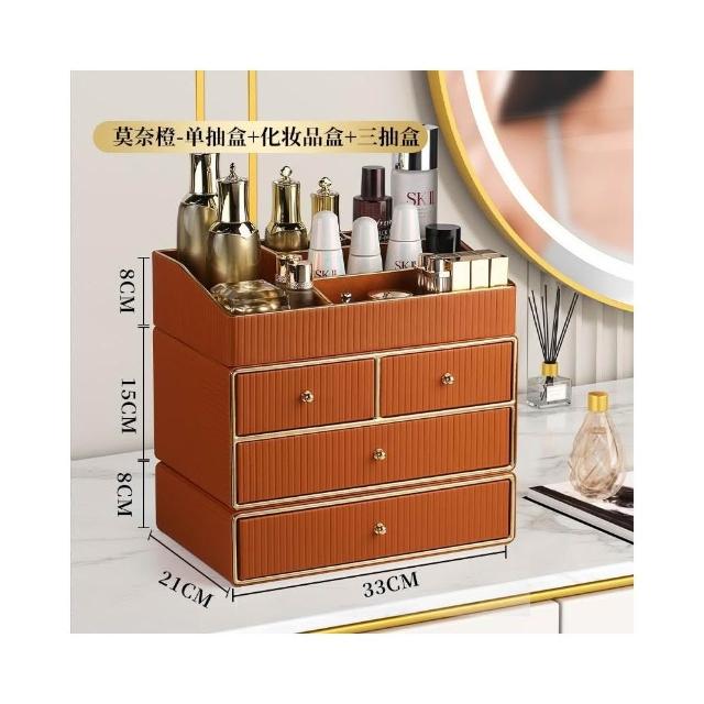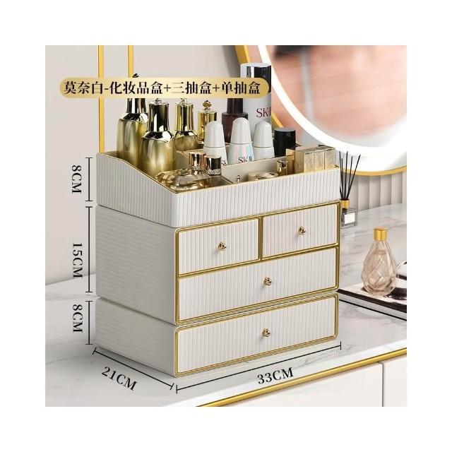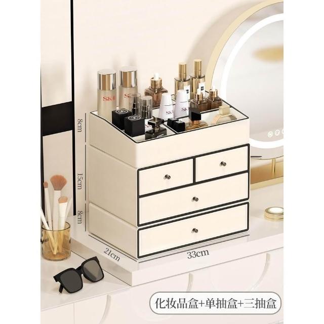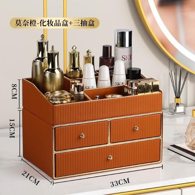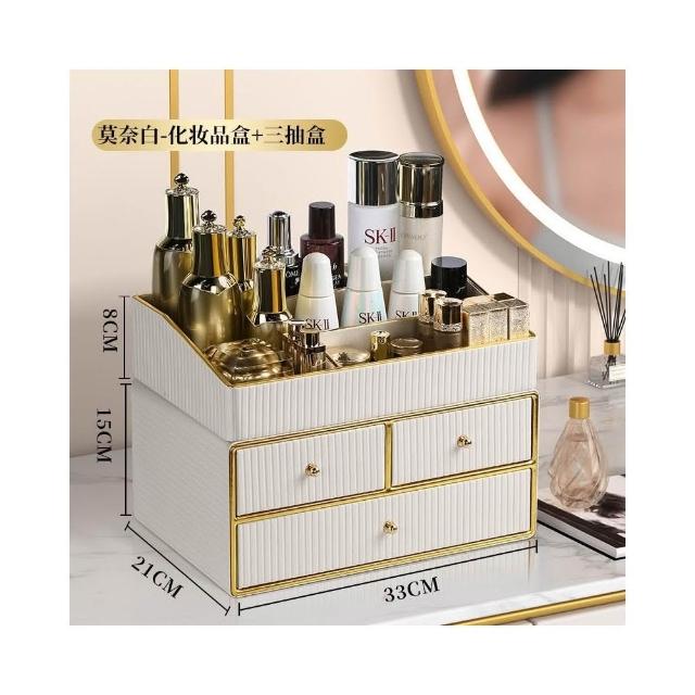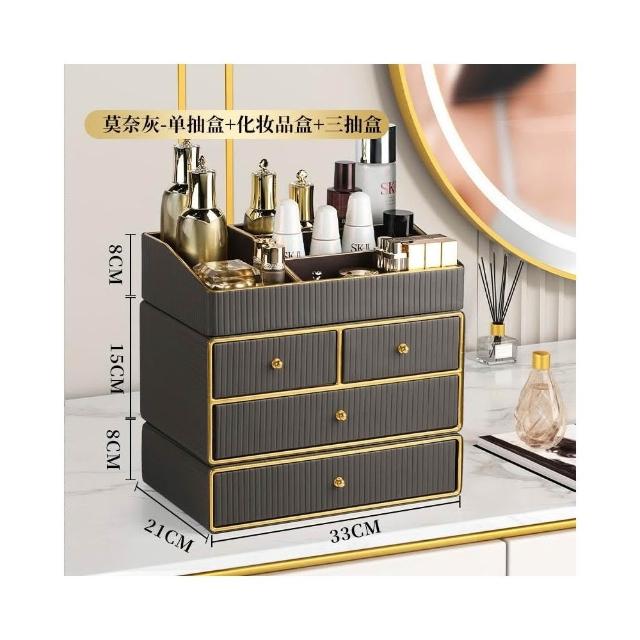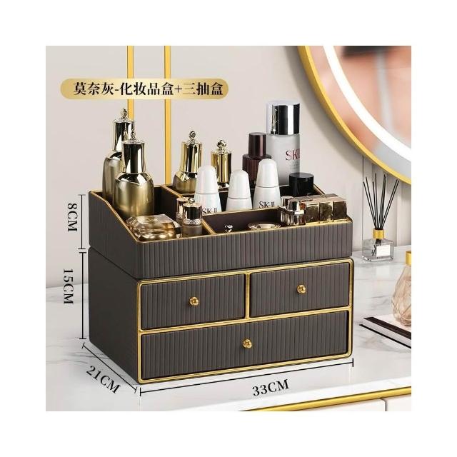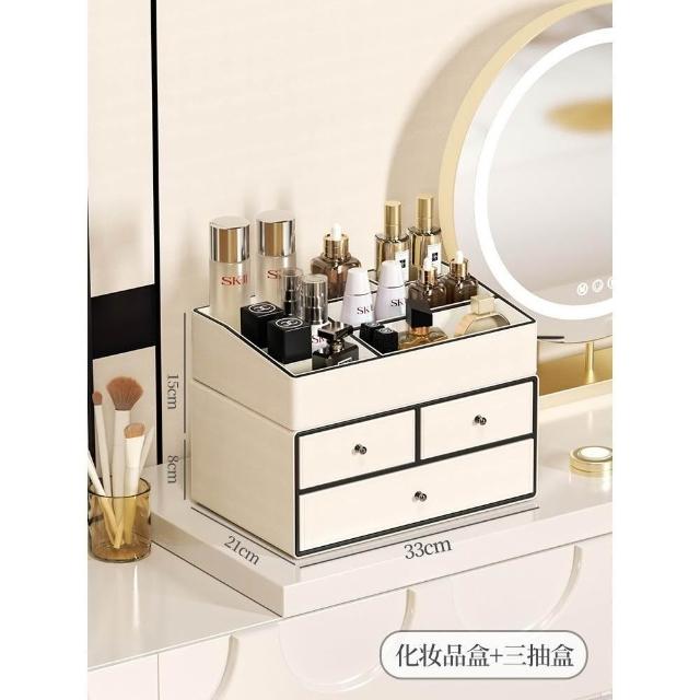化妝收納盒美妝儲物 新款時尚化妆品收纳盒桌面梳妆台置物架护肤品杂物抽屉防尘