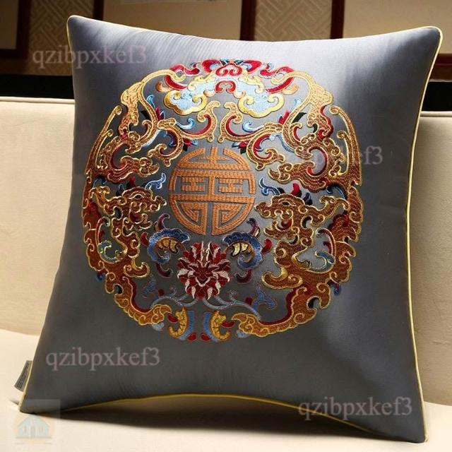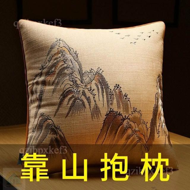 中式靠山抱枕 客廳牀頭靠背 刺繡靠枕套 含芯大靠墊 綢緞沙發靠墊 枕芯 靠枕沙發抱枕 靠背枕 沙發枕