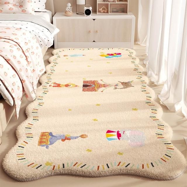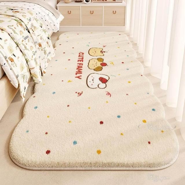 卡通風格羊絨地毯 臥室異形卡通床邊毯 防水毛絨隔涼奶油風床邊地毯 家用易清潔清洗地毯 聚會可坐地毯