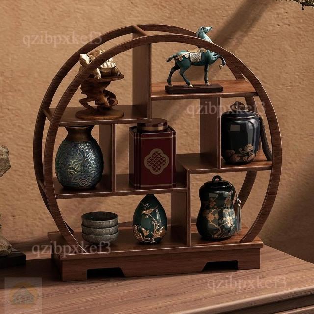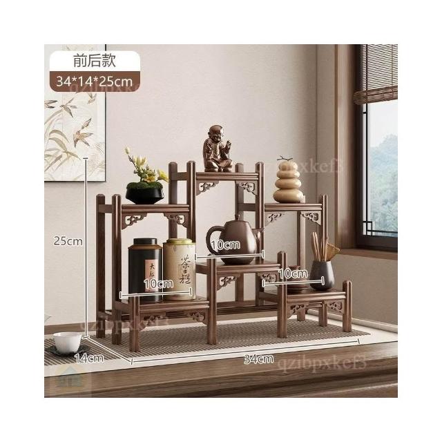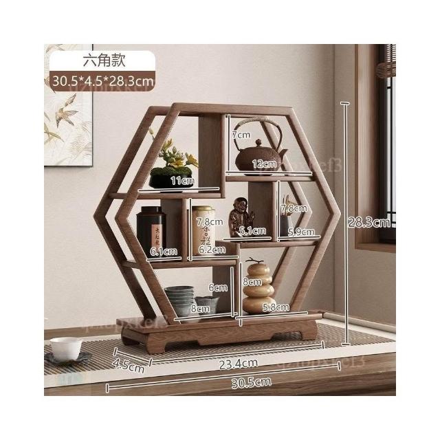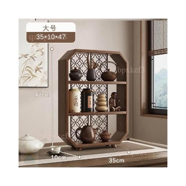 實木博古架 桌面茶具收納 小型茶桌收納 茶葉放置架 茶臺擺放架子 茶葉置物架 茶室擺件展架 瀝水茶杯