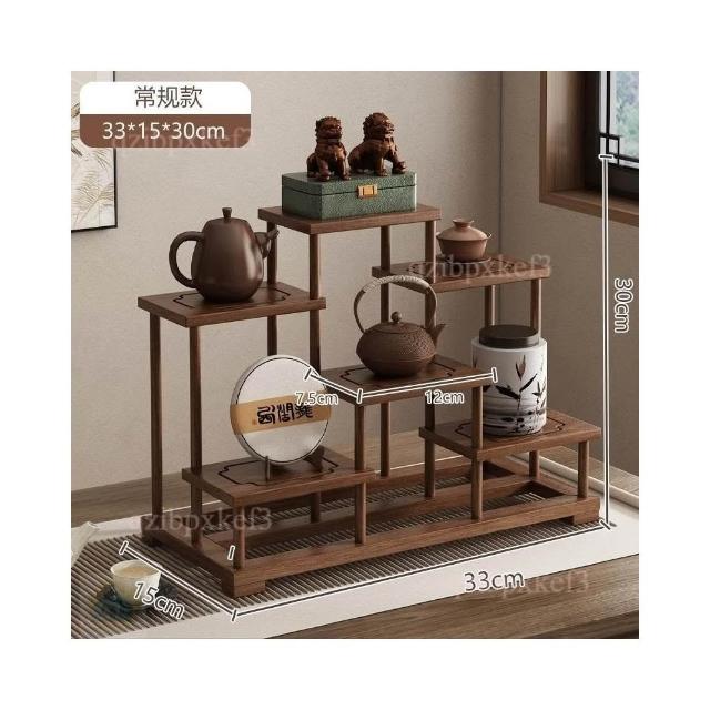 實木博古架 桌面茶具收納 小型茶桌收納 茶葉放置架 茶臺擺放架子 茶葉置物架 茶室擺件展架 瀝水茶杯