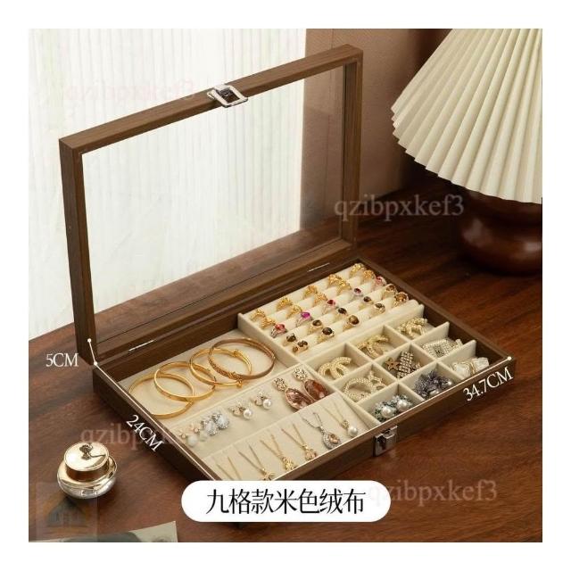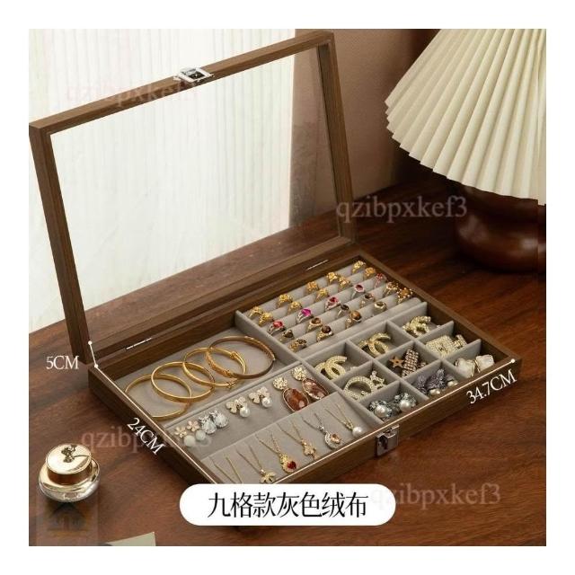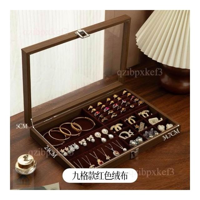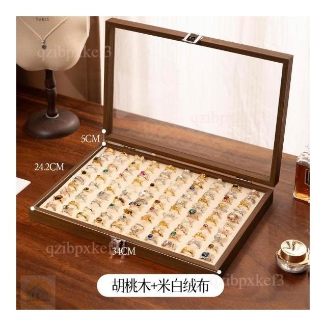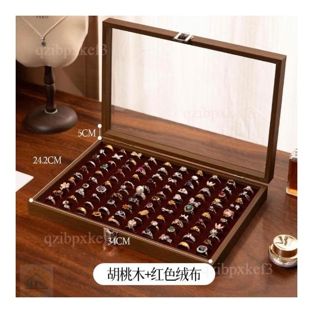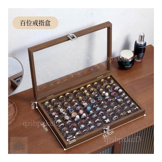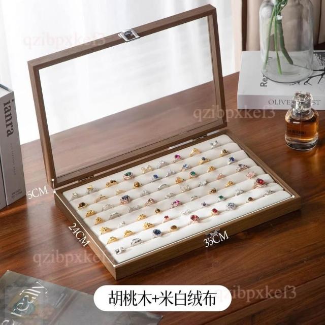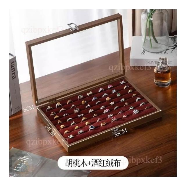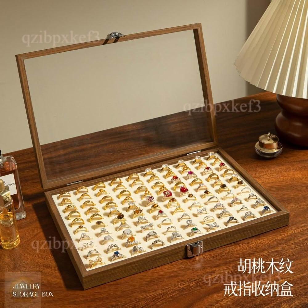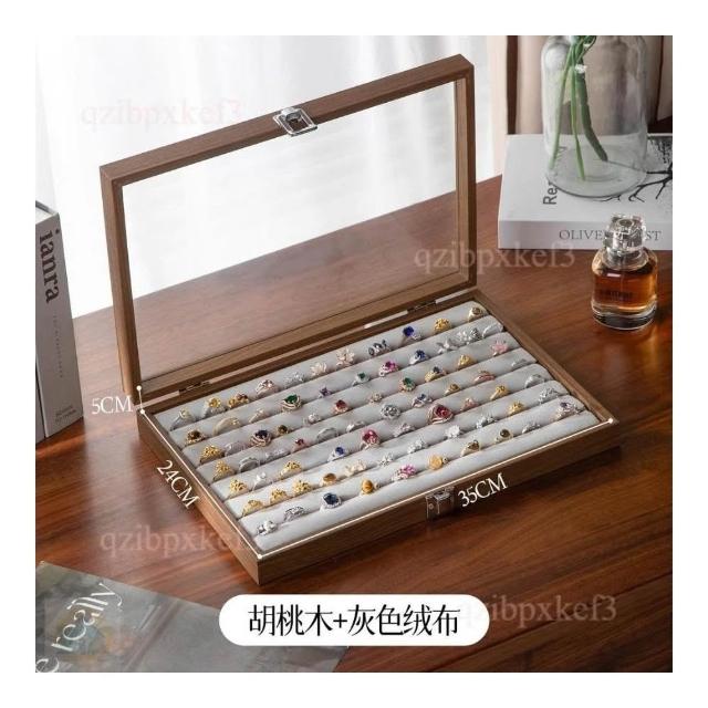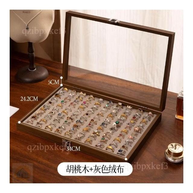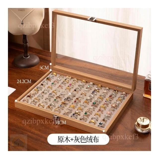戒指收納盒 飾品展示盤 高檔專用 耳釘首飾盒 大容量首飾盒 多位首飾盒 木質首飾盒 高級感首飾盒 收