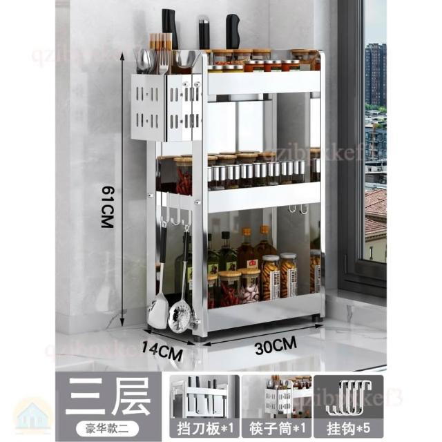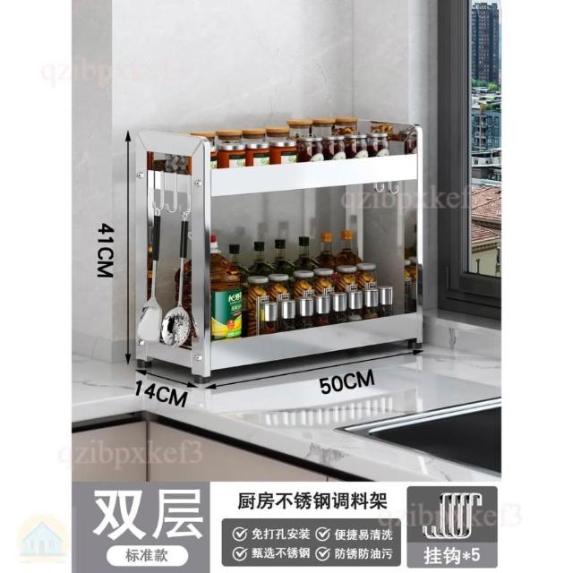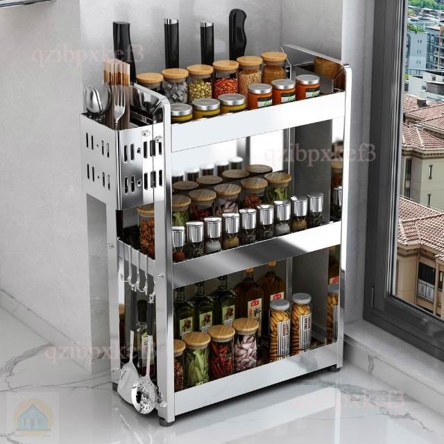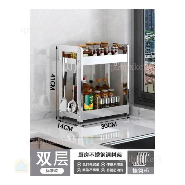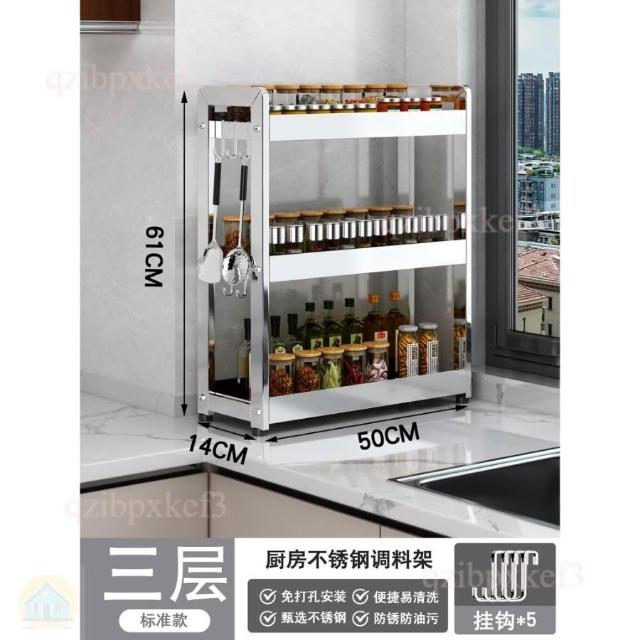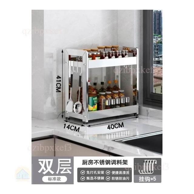 廚房調料置物架 不銹鋼置物架 調味品罐架 台面收納架 家用廚房架 小型調理架 台式收納架 窄款收納架