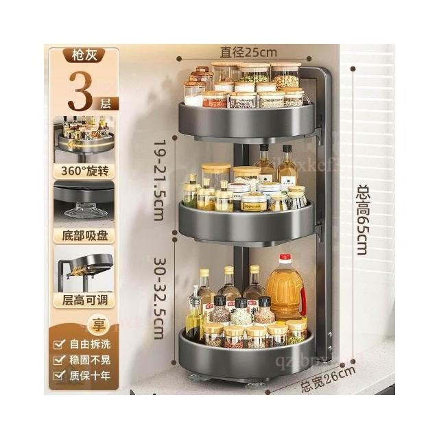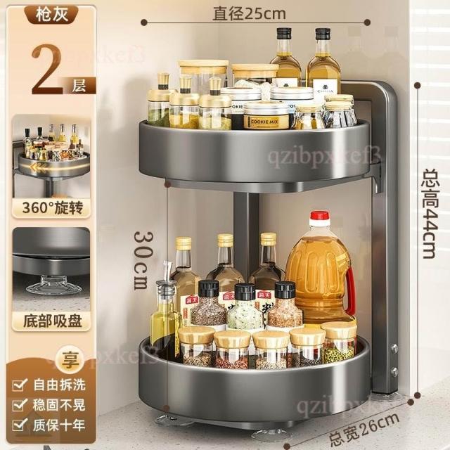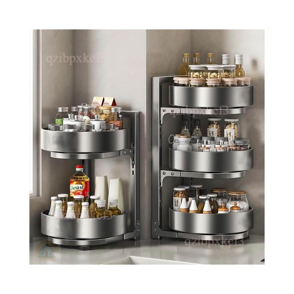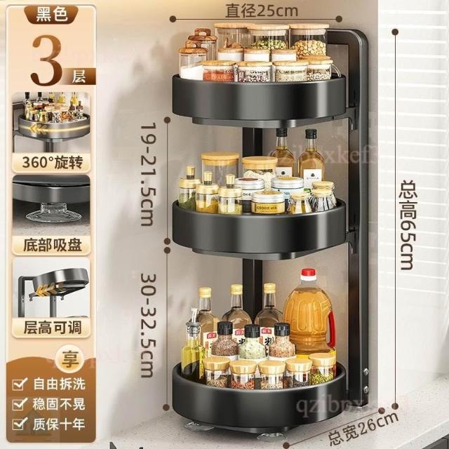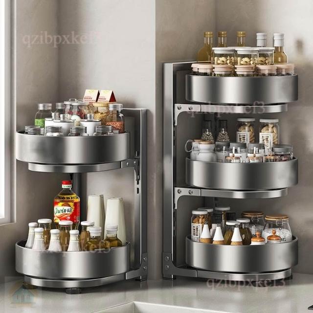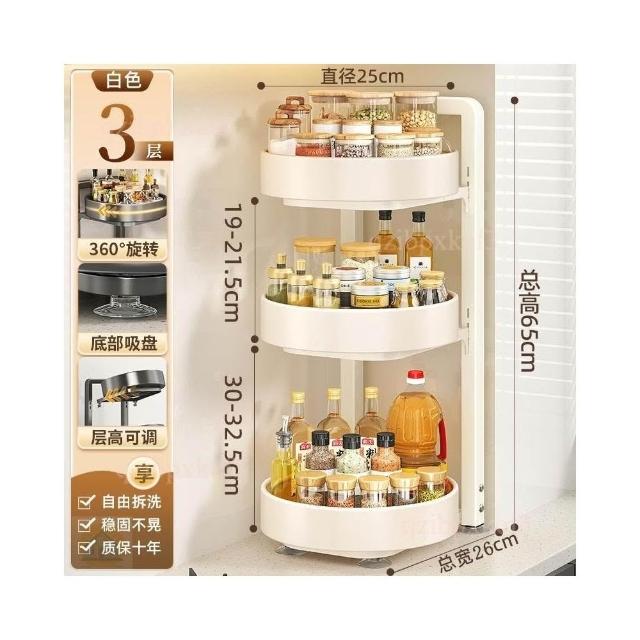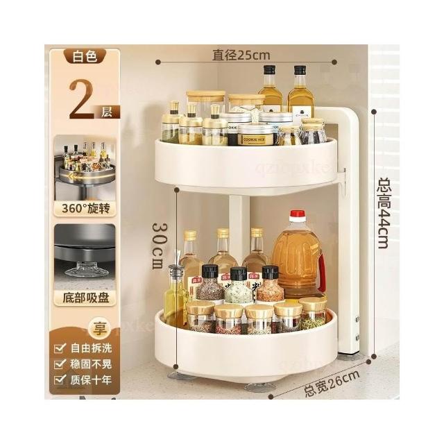 旋轉調料品置物架 廚房置物架 台面廚房架 多功能收納架 轉角置物架 油鹽醬醋收納 調味料用品托盤 多