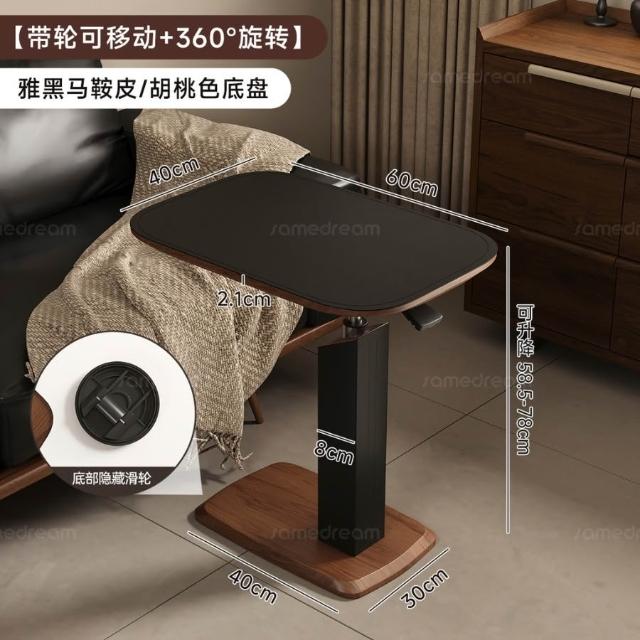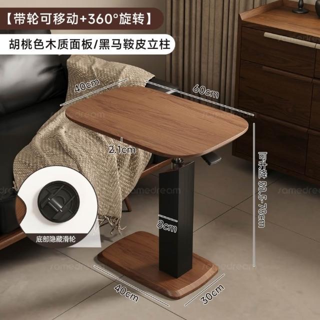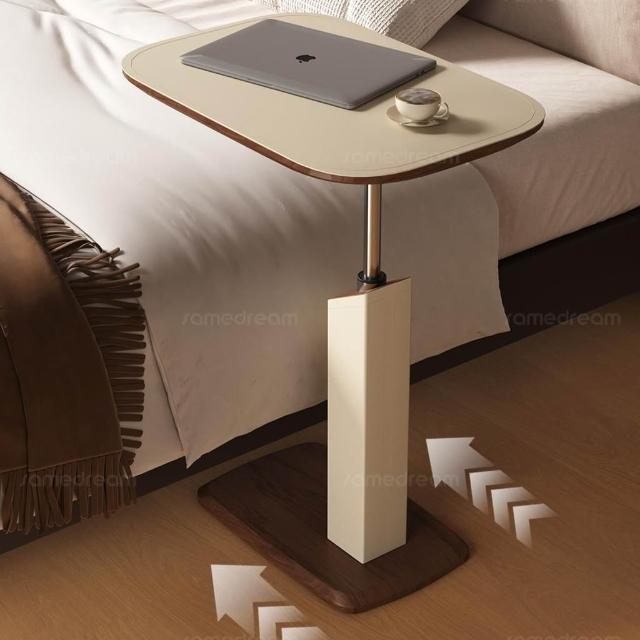 升降邊桌 沙發邊几 皮藝邊幾 可移動升降床邊桌 小桌子 奶油風邊幾 客廳茶几中古風臥室升降床邊桌電腦