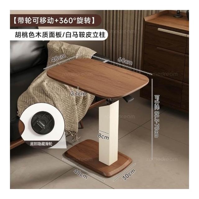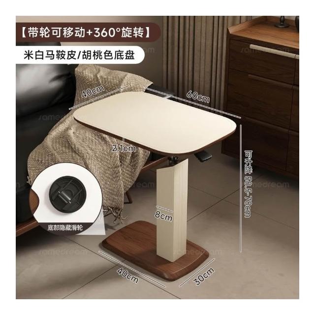 升降邊桌 沙發邊几 皮藝邊幾 可移動升降床邊桌 小桌子 奶油風邊幾 客廳茶几中古風臥室升降床邊桌電腦
