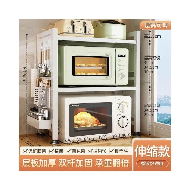 可伸縮置物架 廚房置物架 微波爐烤箱架子 廚房收納架 層高可調置物架 不銹鋼置物架 台面收納架 桌面