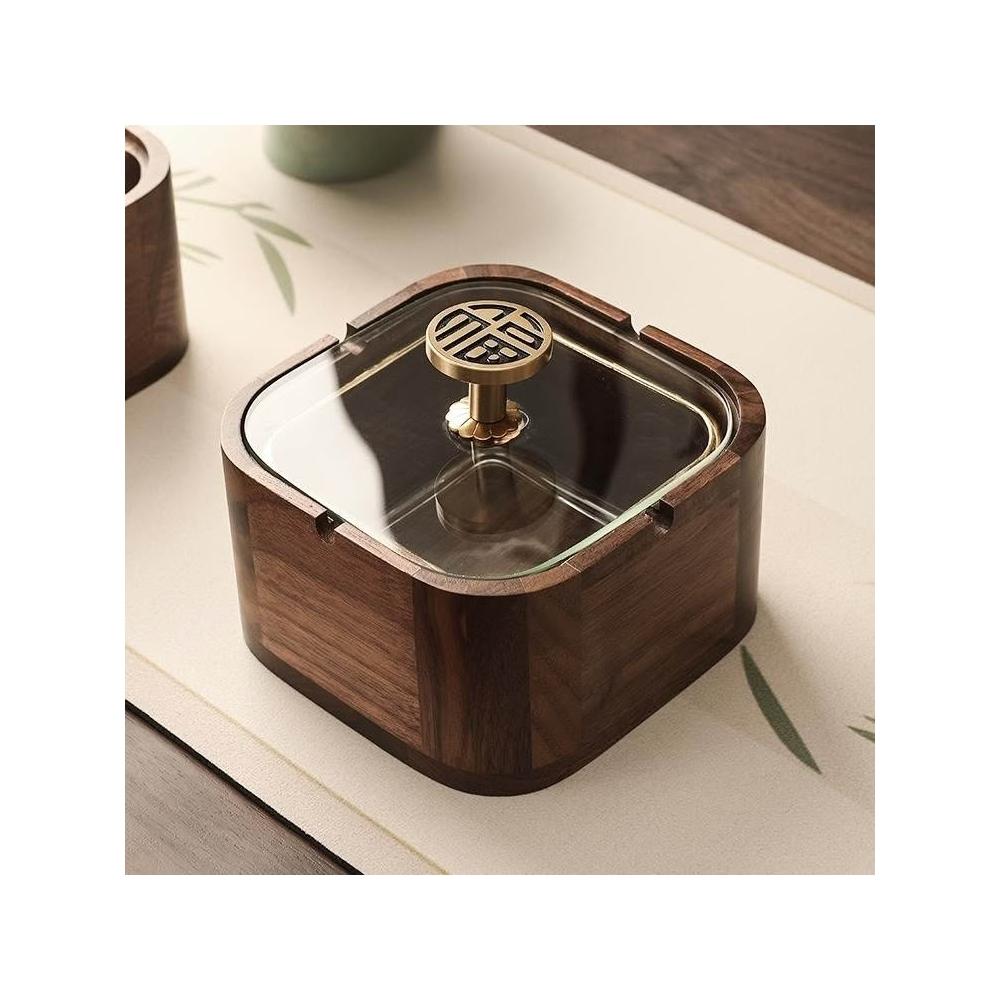 胡桃木煙灰缸 實木煙灰缸 高級感煙灰缸 辦公室煙灰缸 帶蓋防飛灰煙灰缸 中式輕奢禮品父親節禮物