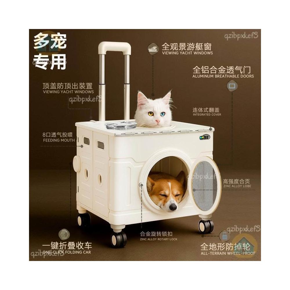 宠物拉杆箱 便携折叠推车 航空箱 行李箱 猫车猫包 狗狗兔子猫咪外出透氣太空艙 推車 寵物行李箱 外