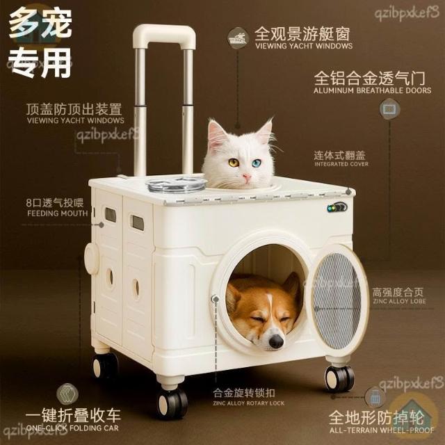 宠物拉杆箱 便携折叠推车 航空箱 行李箱 猫车猫包 狗狗兔子猫咪外出透氣太空艙 推車 寵物行李箱 外