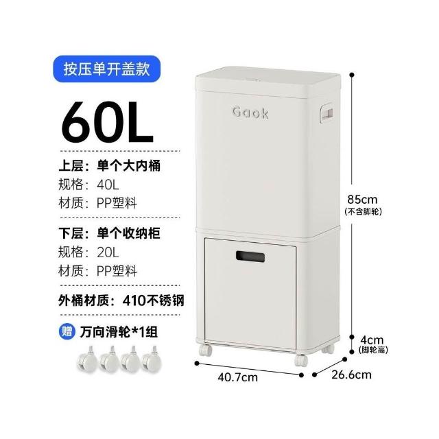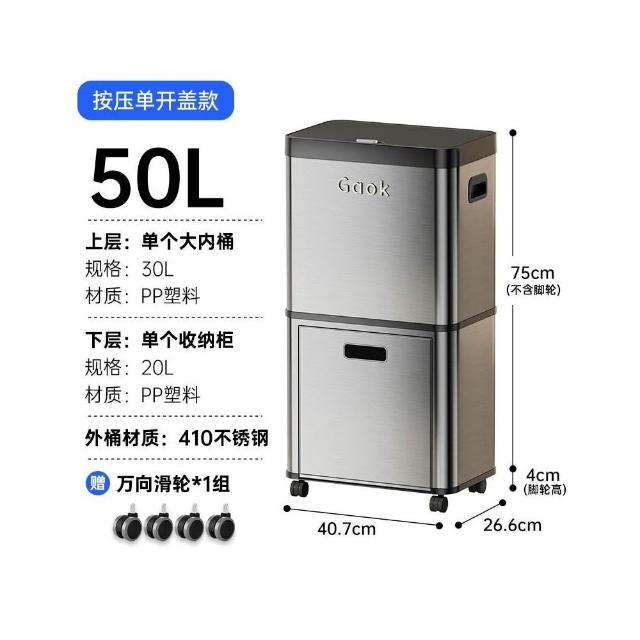 干湿分离厨房分类垃圾桶高款可移动卫生桶大容量免弯腰