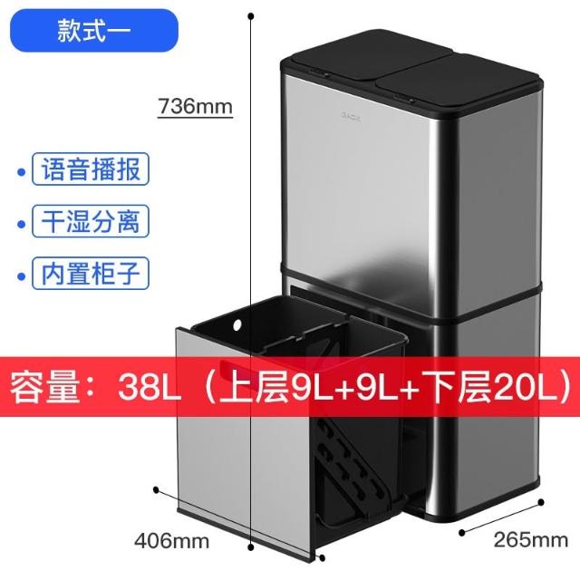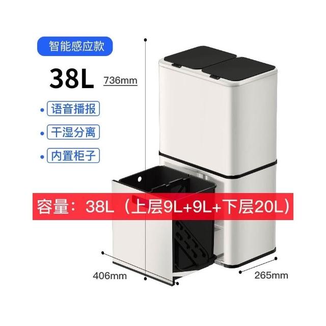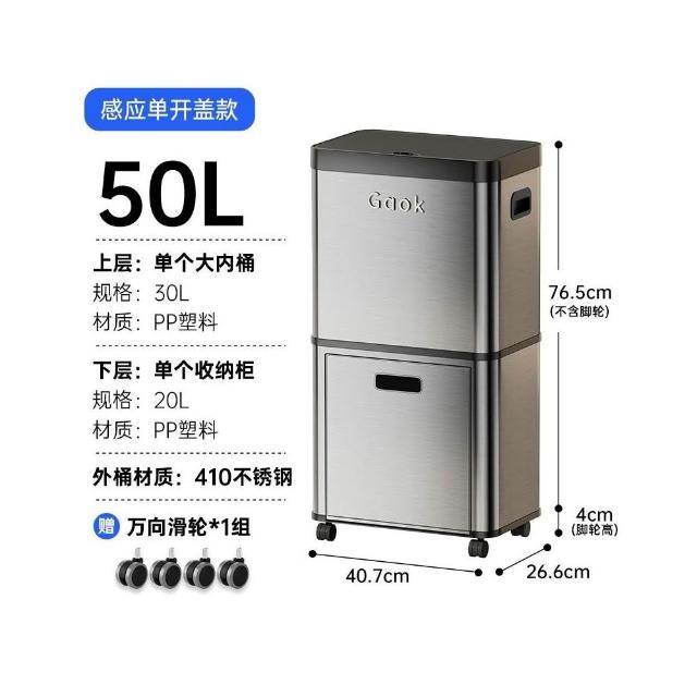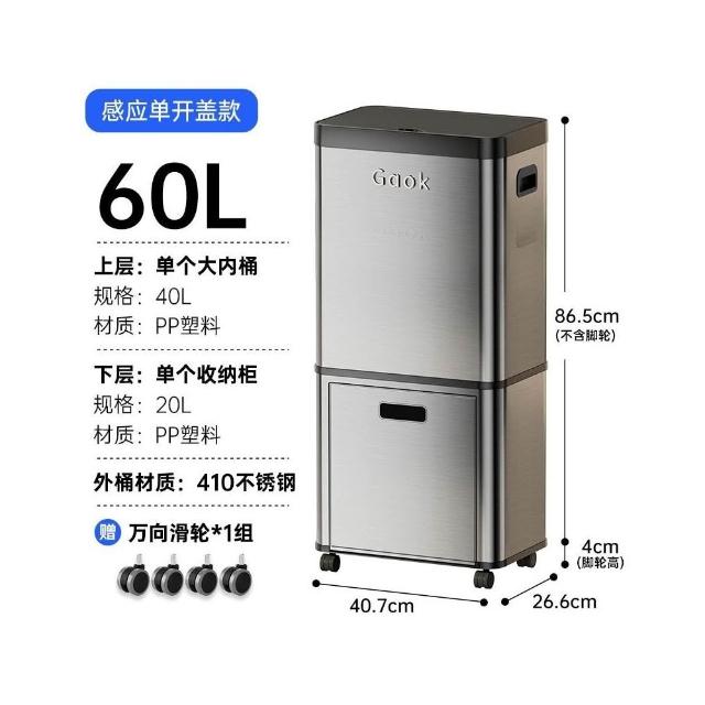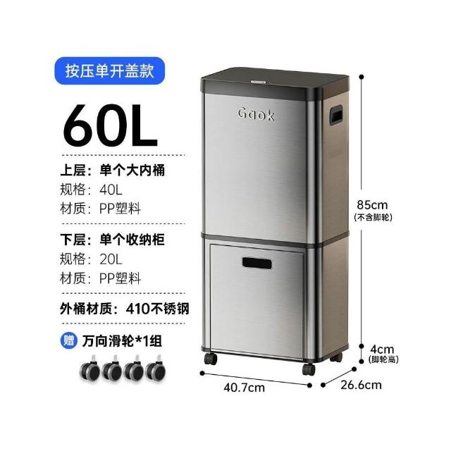 干湿分离厨房分类垃圾桶高款可移动卫生桶大容量免弯腰