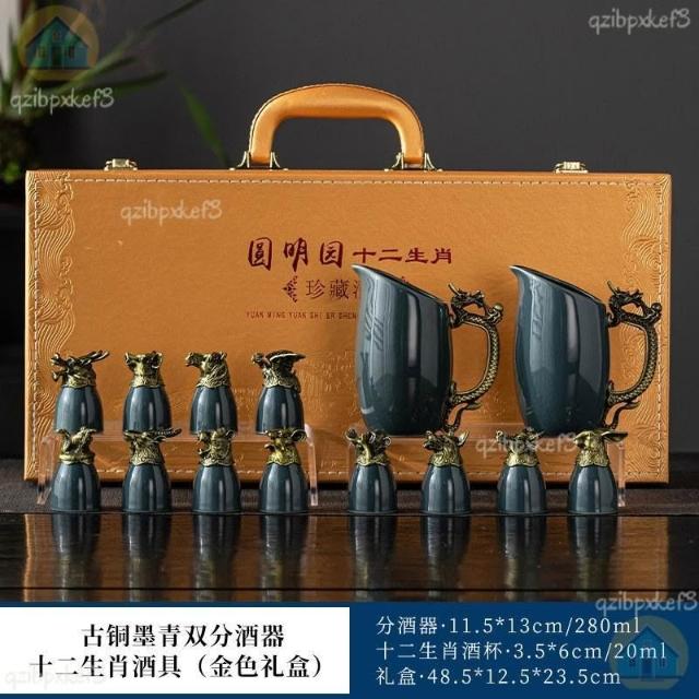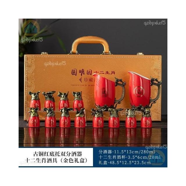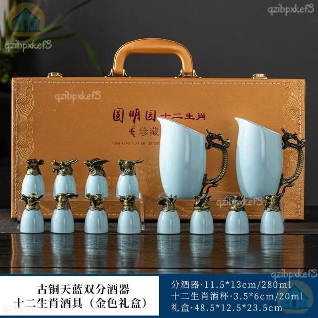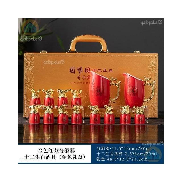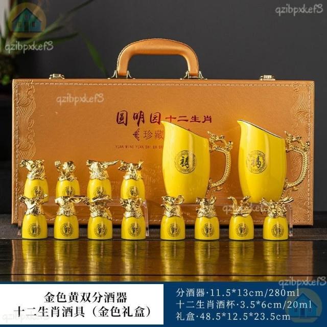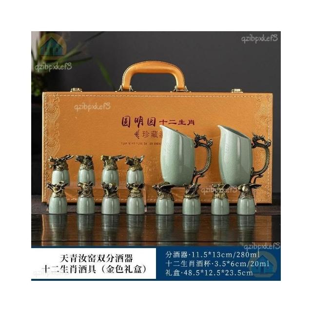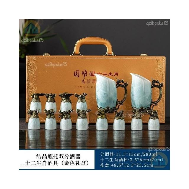 附發票🔈陶瓷分酒器 白酒杯禮盒套裝 十二生肖酒杯 酒具收納盒 家用烈酒杯 送禮品 刻度小酒壺 商務