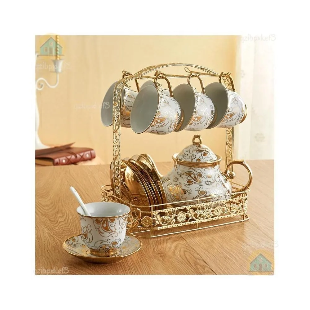 附發票🔈陶瓷咖啡杯 咖啡杯壺套裝 家庭咖啡杯 現代咖啡杯 輕奢咖啡杯 歐式咖啡杯 小奢華咖啡杯 辦