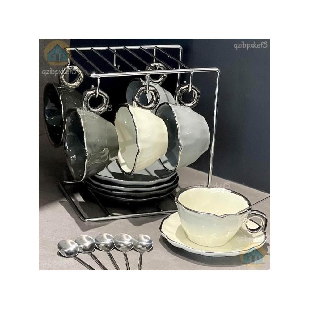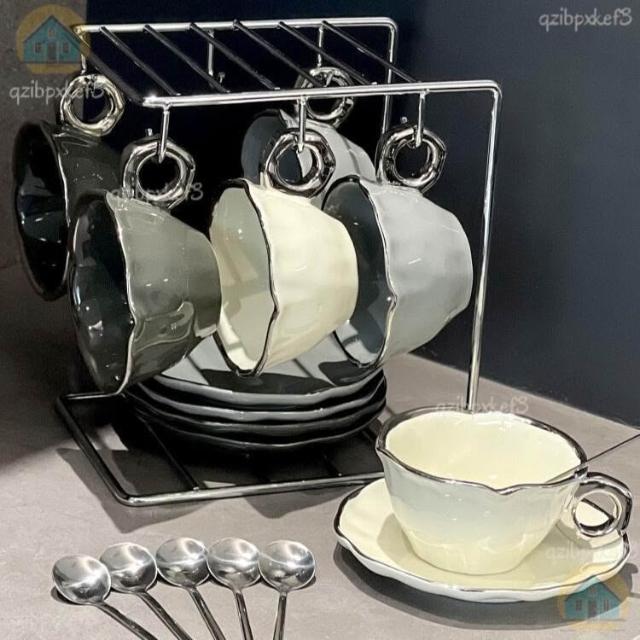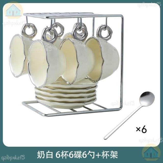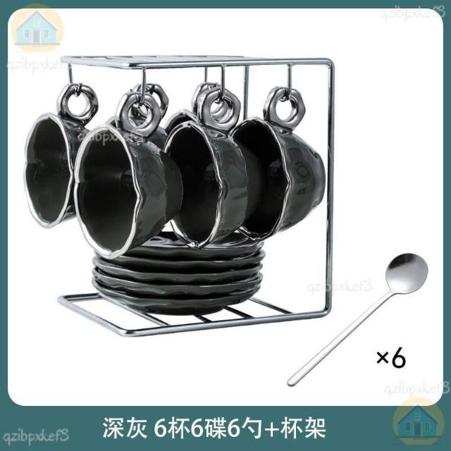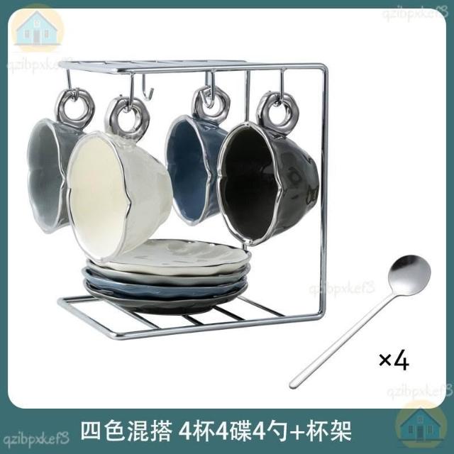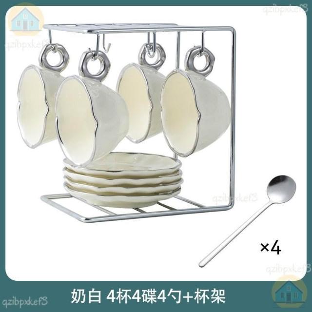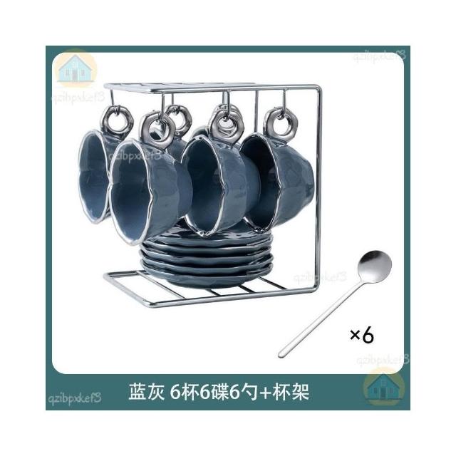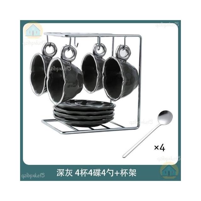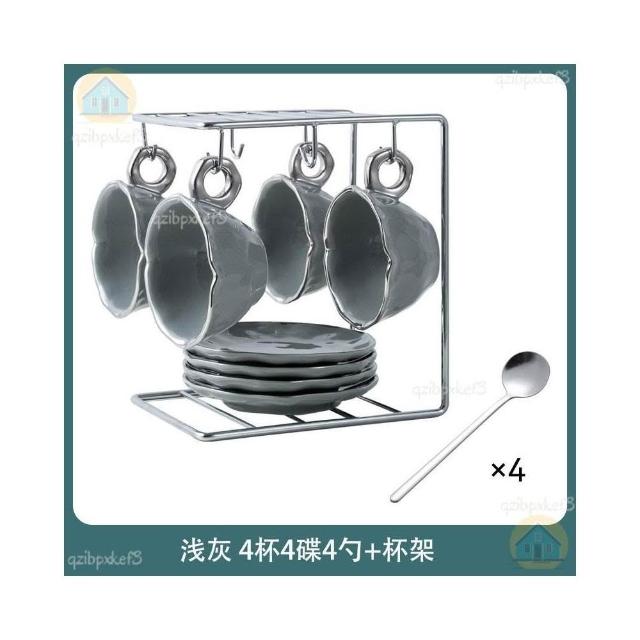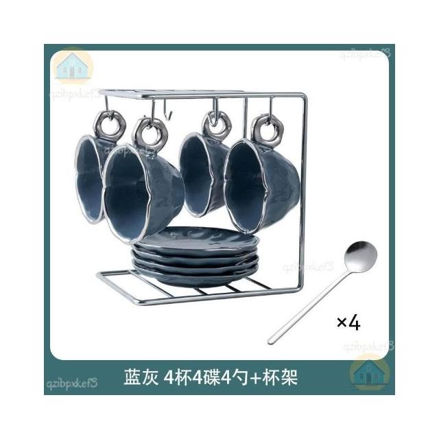 附發票🔈輕奢咖啡杯 高檔咖啡杯 精緻咖啡杯 女士咖啡杯 高顏值陶瓷杯碟套裝 咖啡杯 杯架 手工製作
