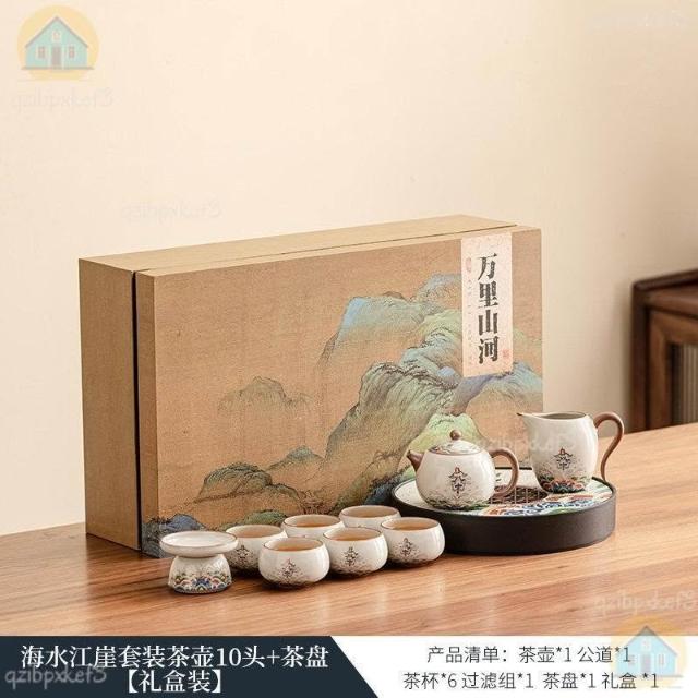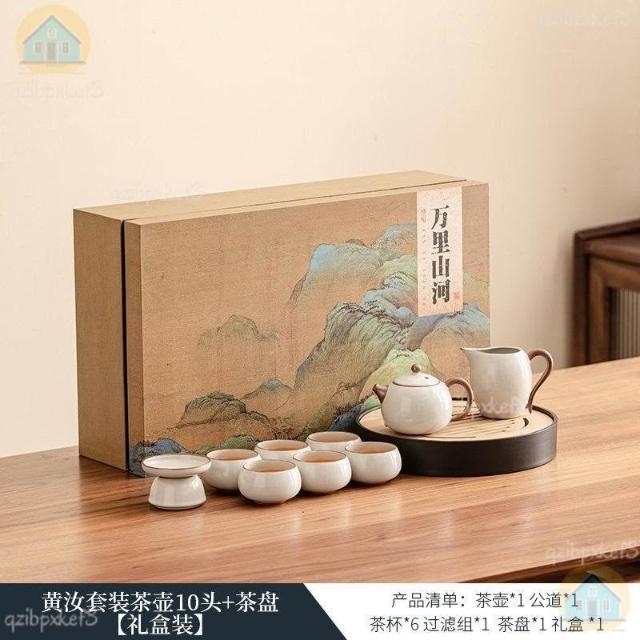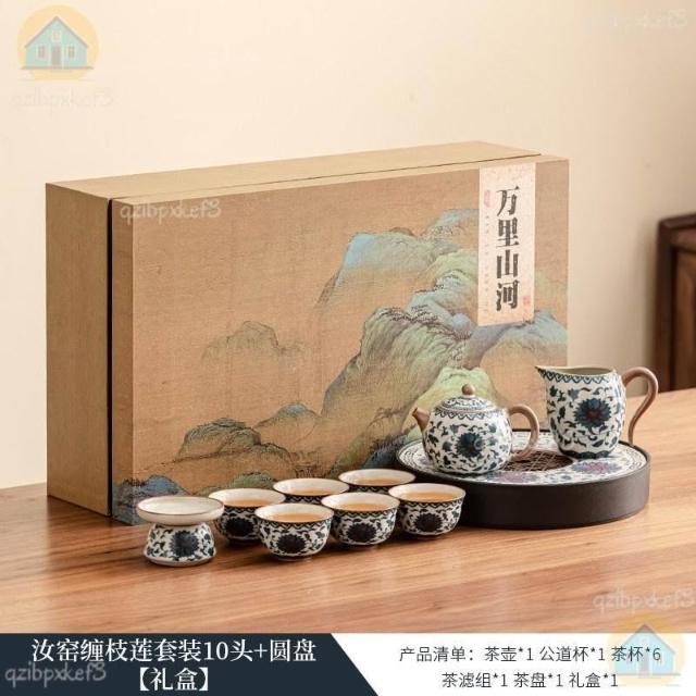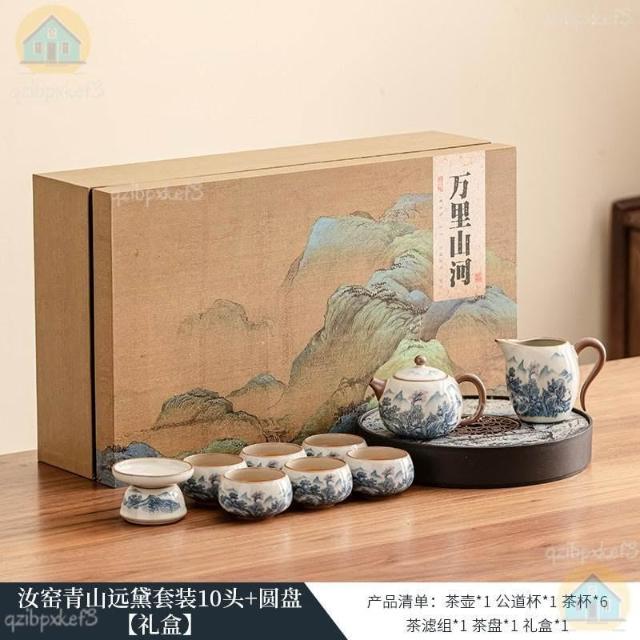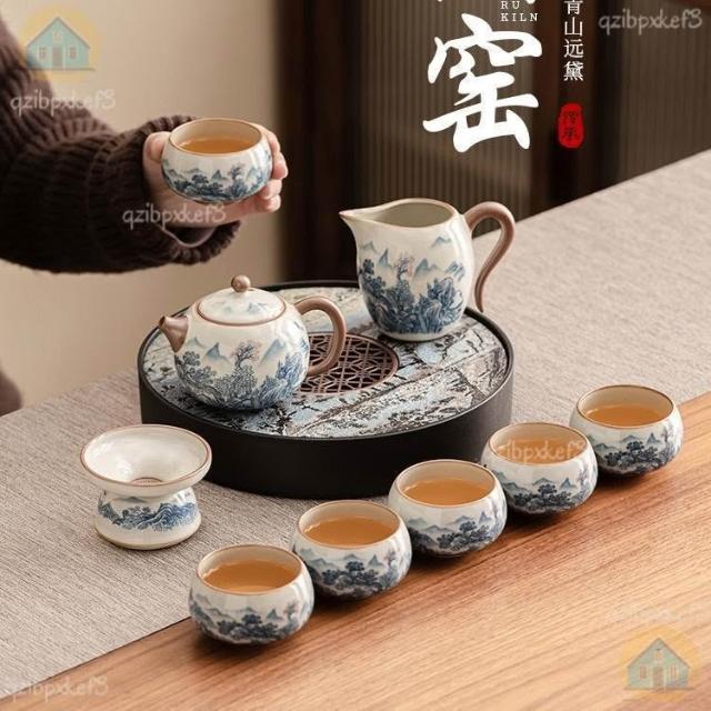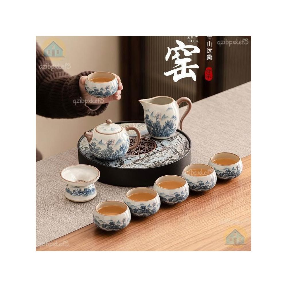 附發票🔈汝窯茶具套裝 家用茶具組 茶具包 茶壺 旅行茶具 外出茶具 泡茶禮盒輕奢高檔喬遷新居退休離