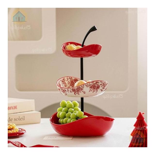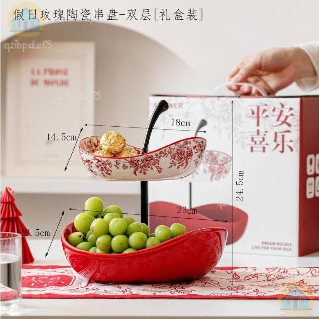 陶瓷水果盤 商鋪前臺水果盤 擺放零食盤 多層糖果盤 客廳茶幾擺件 家用高顏值果盤高 陶瓷 派對盤