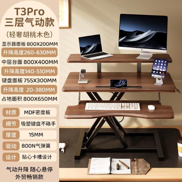 站立式可升降摺疊工作台桌面台式電腦顯示器增高架辦公電腦支架桌子工作台升降桌筆記本電腦桌桌面升降台