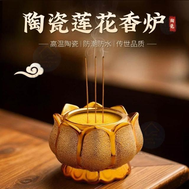 陶瓷蓮花香爐供佛家用室內上香供奉觀音財神爺插香燒香碗香薰爐