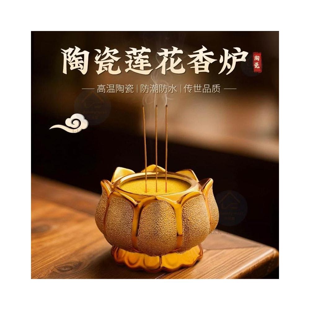 陶瓷蓮花香爐供佛家用室內上香供奉觀音財神爺插香燒香碗香薰爐