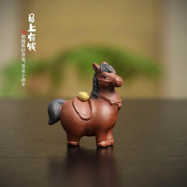 茶寵馬上有錢紫砂精品可養創意招財小馬茶玩工藝品茶桌擺件