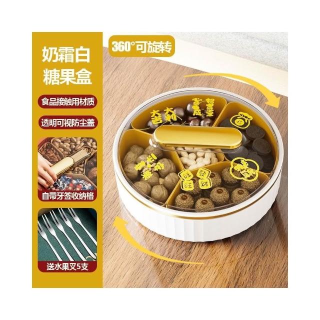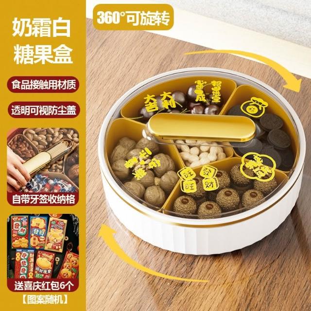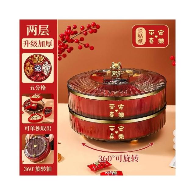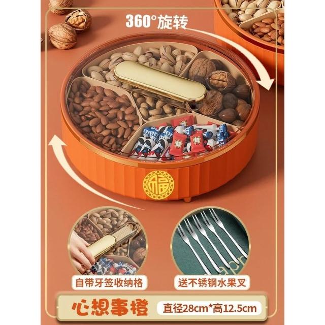 果盤家用客廳茶幾水果盤糖果盒旋轉乾果盒新年喜慶瓜子零食收納盒