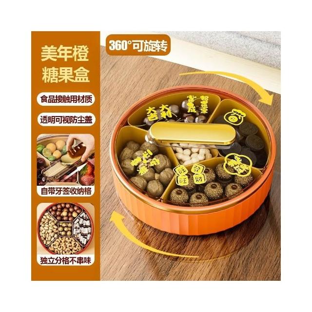 果盤家用客廳茶幾水果盤糖果盒旋轉乾果盒新年喜慶瓜子零食收納盒
