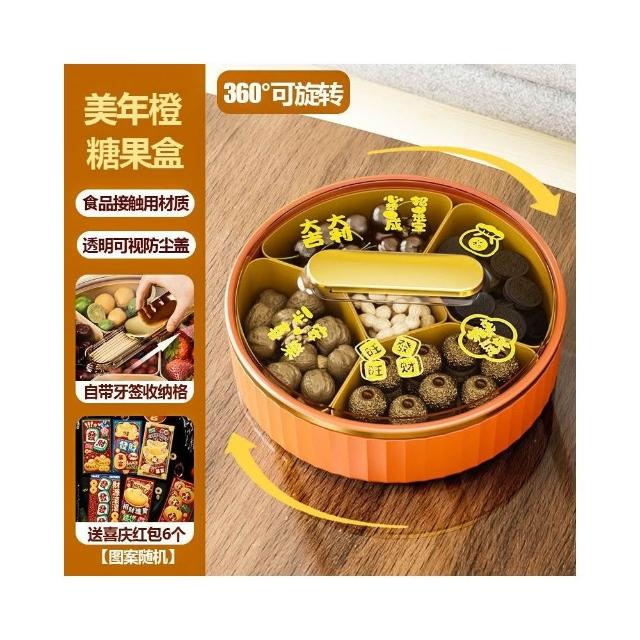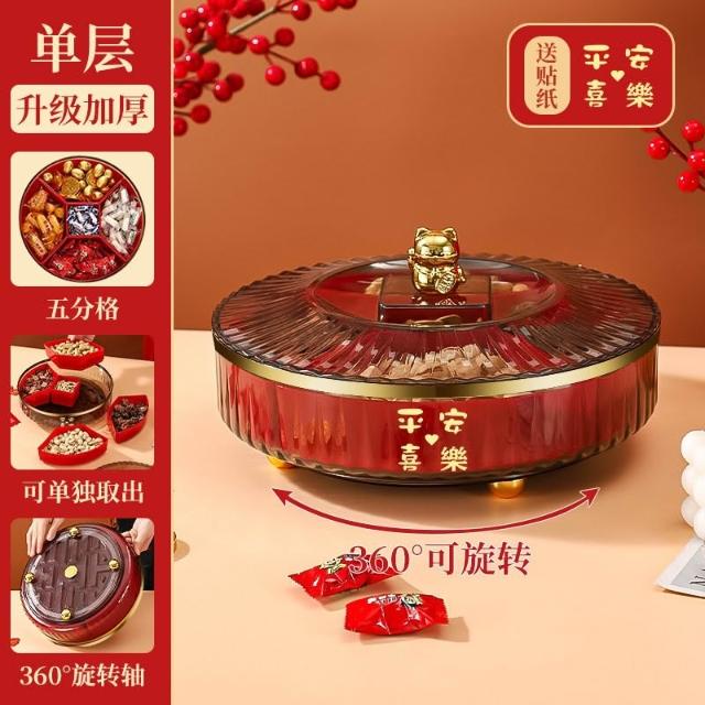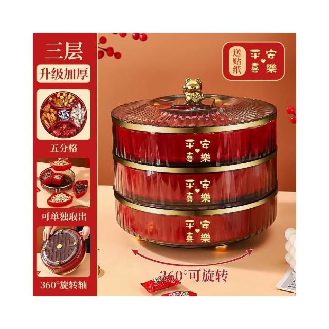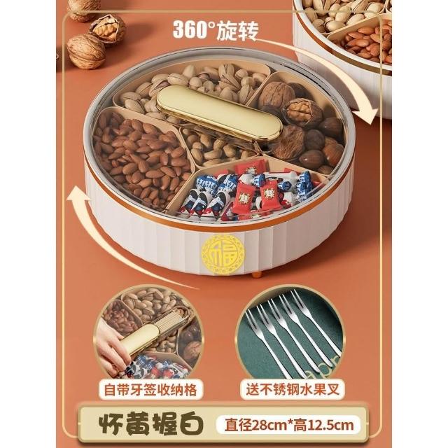 果盤家用客廳茶幾水果盤糖果盒旋轉乾果盒新年喜慶瓜子零食收納盒