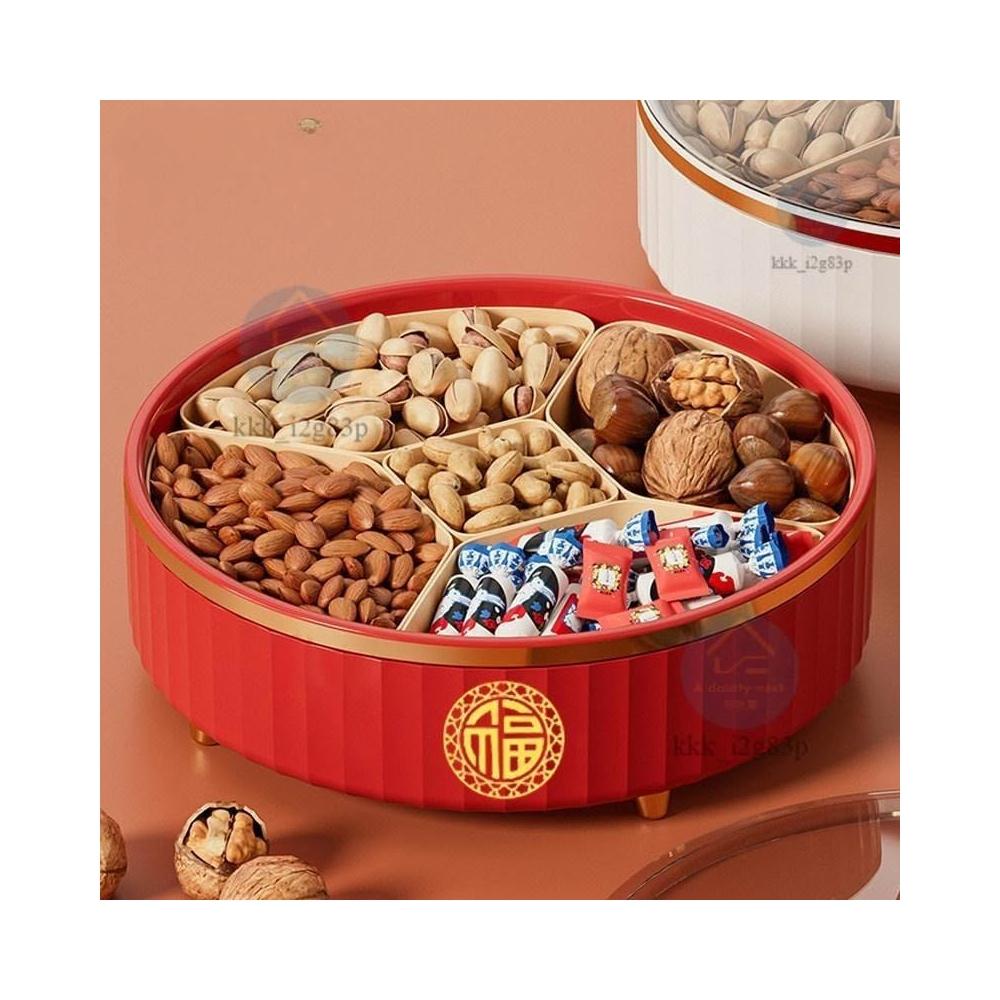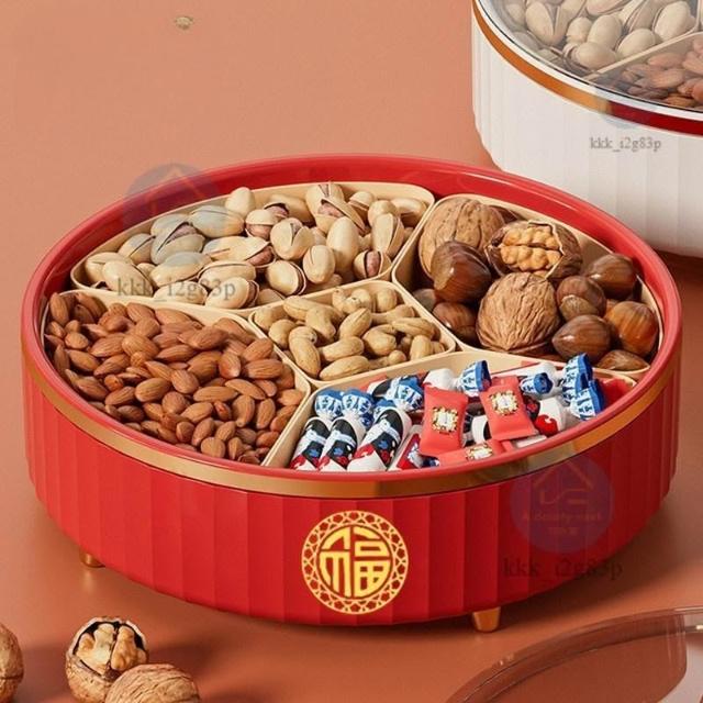 果盤家用客廳茶幾水果盤糖果盒旋轉乾果盒新年喜慶瓜子零食收納盒