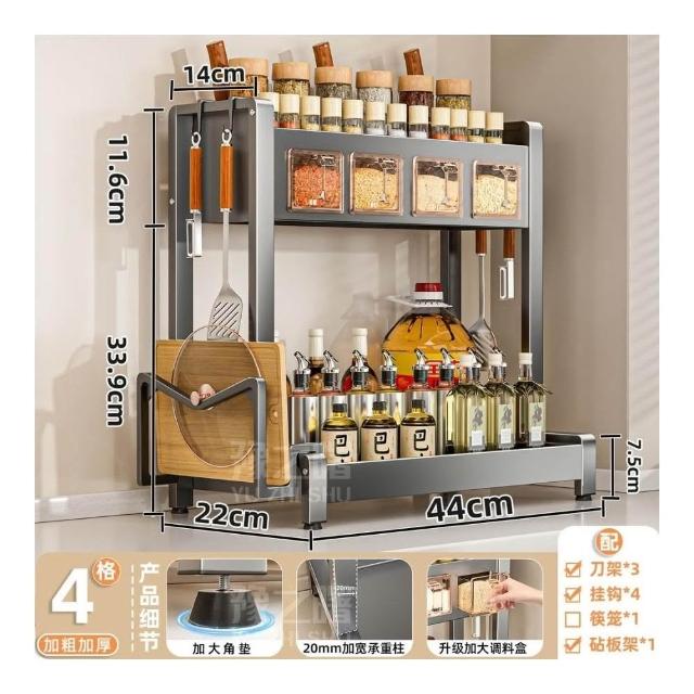 調料置物架 廚房鹽調味品盒罐多功能刀架 家用臺麵多層收納架子