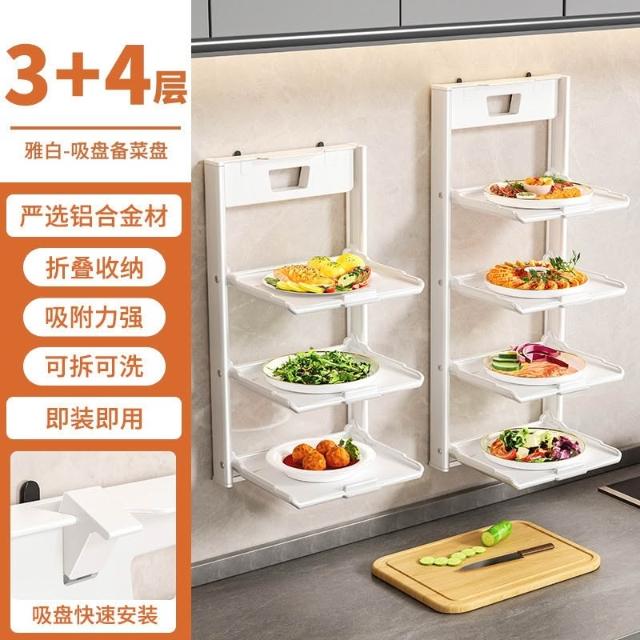 吸盤備菜置物架 廚房可折疊多層配菜 疊放家用神器 壁掛多功能收納架 吸盤備菜架 廚房置物架 調料架層