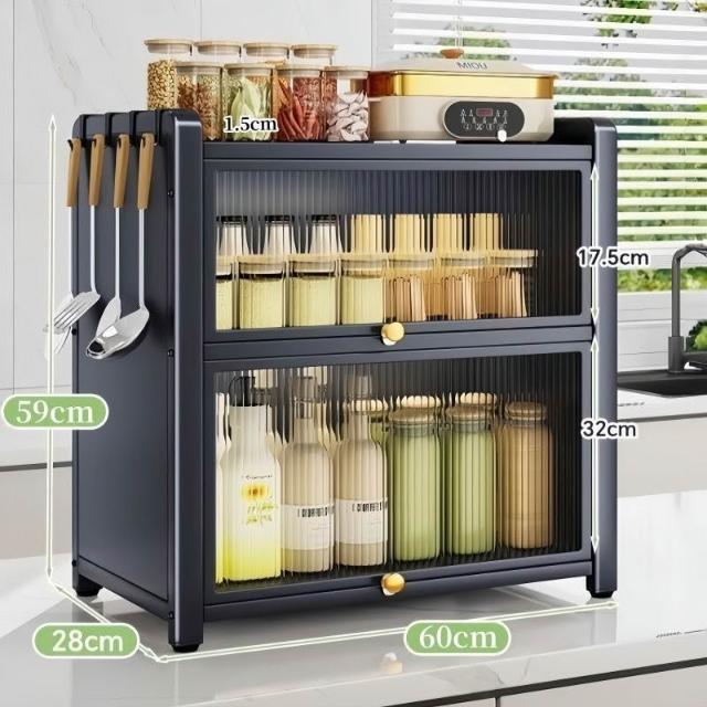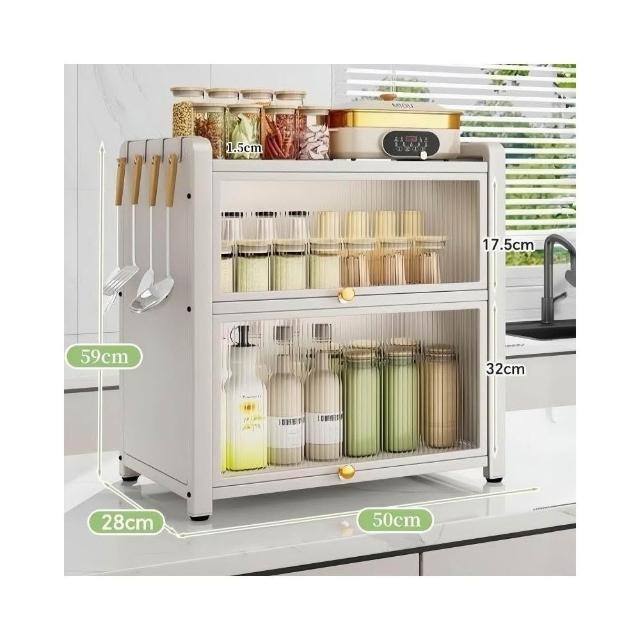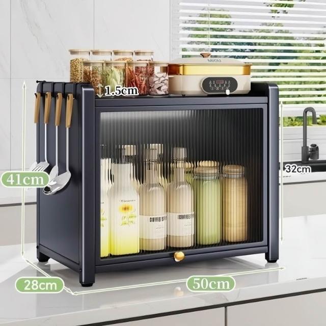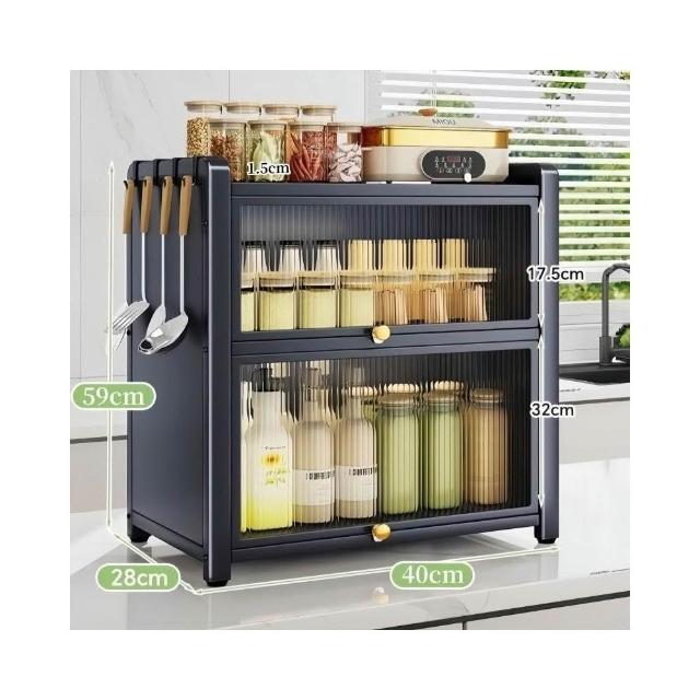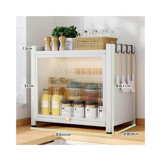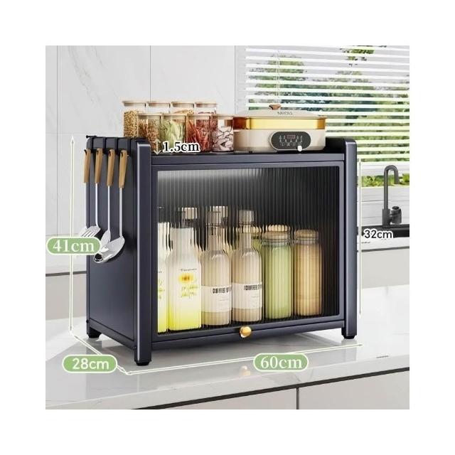 收納櫃 廚房臺面收納櫃 多層調料置物架 帶門儲物櫃 密封收納櫃 多功能儲物櫃 防塵收納櫃 檯面收納架