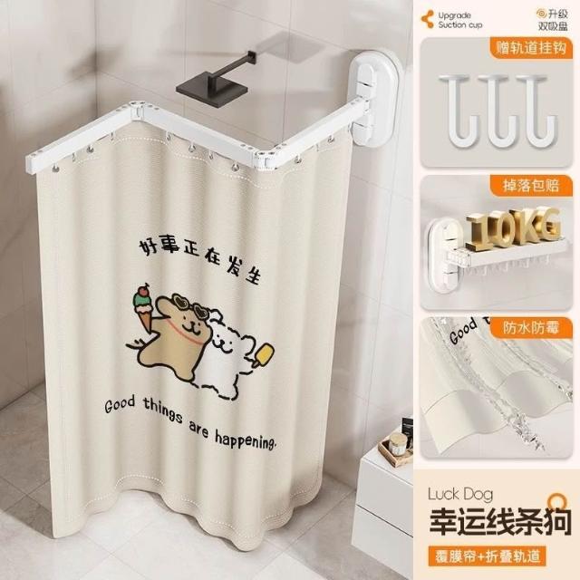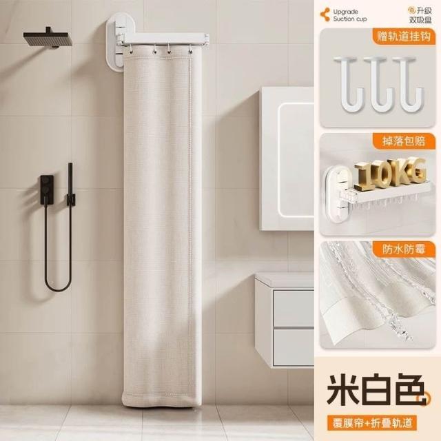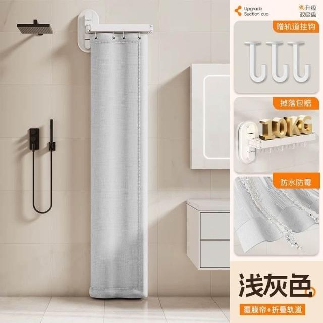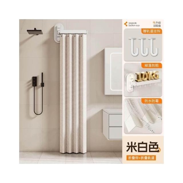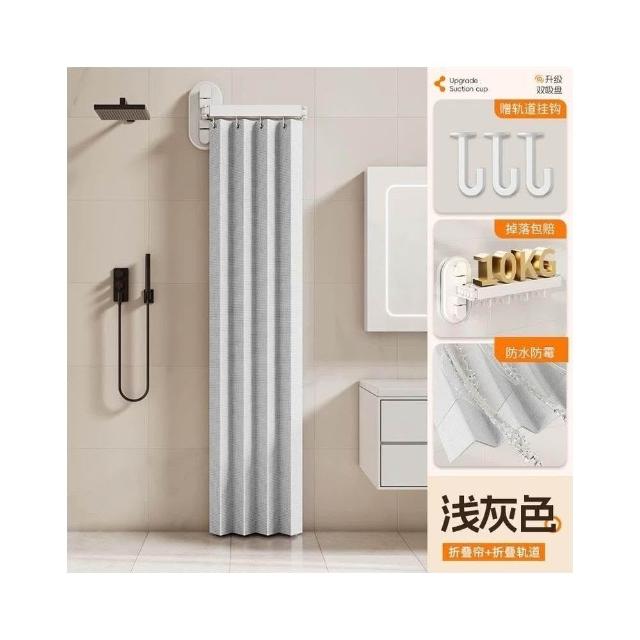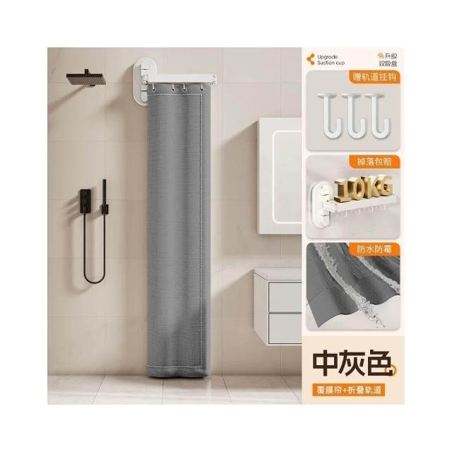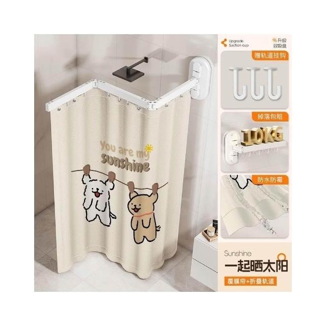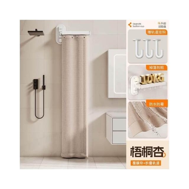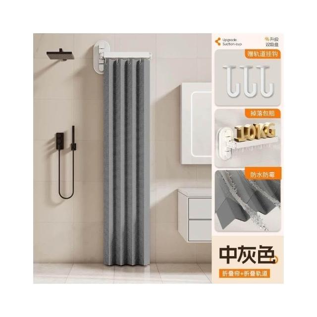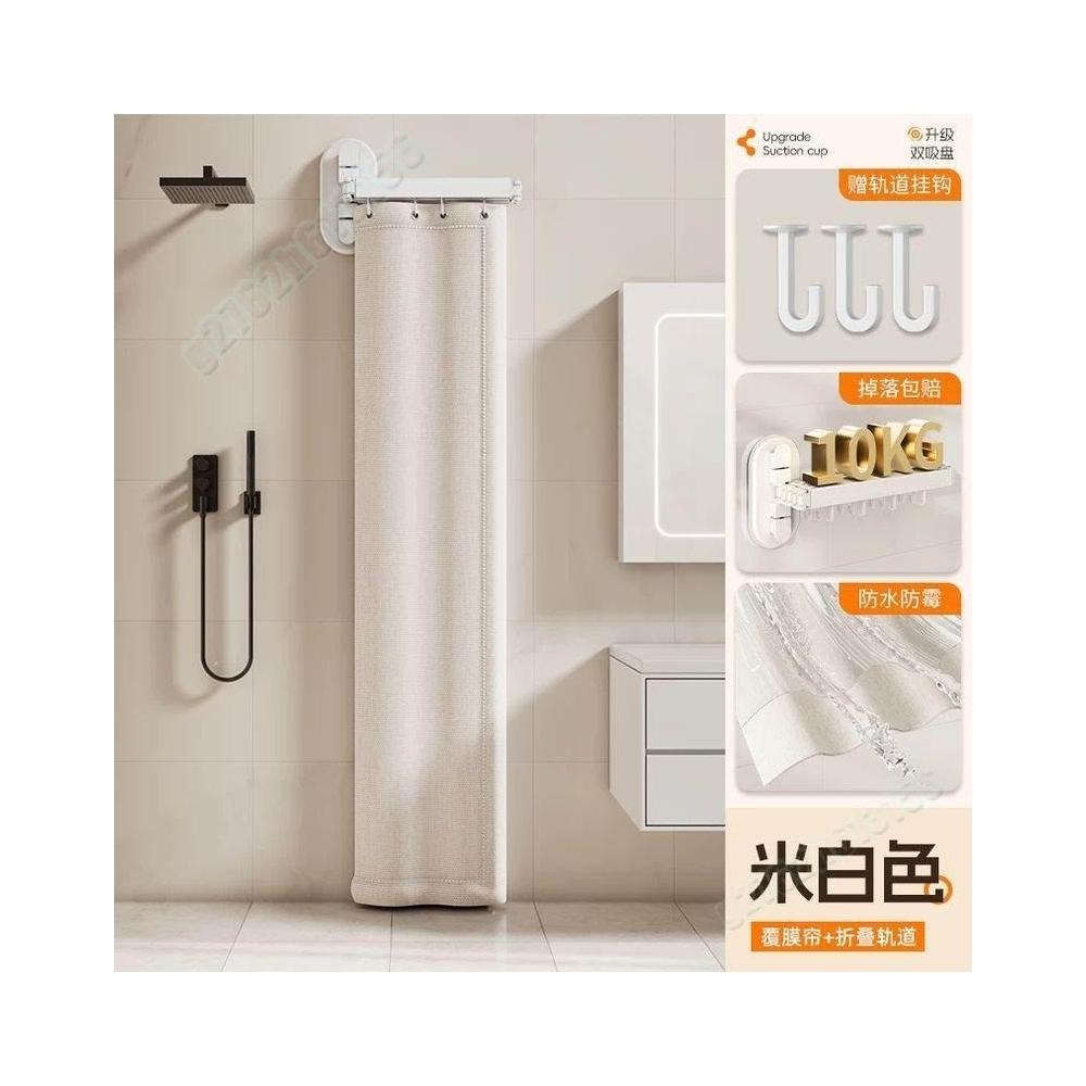 吸盤式折疊浴簾 支架隱形 家用衛生間隔斷干濕分離 免打孔浴室晾衣架 乾濕分離 淋浴擋水簾子 吸盤式浴