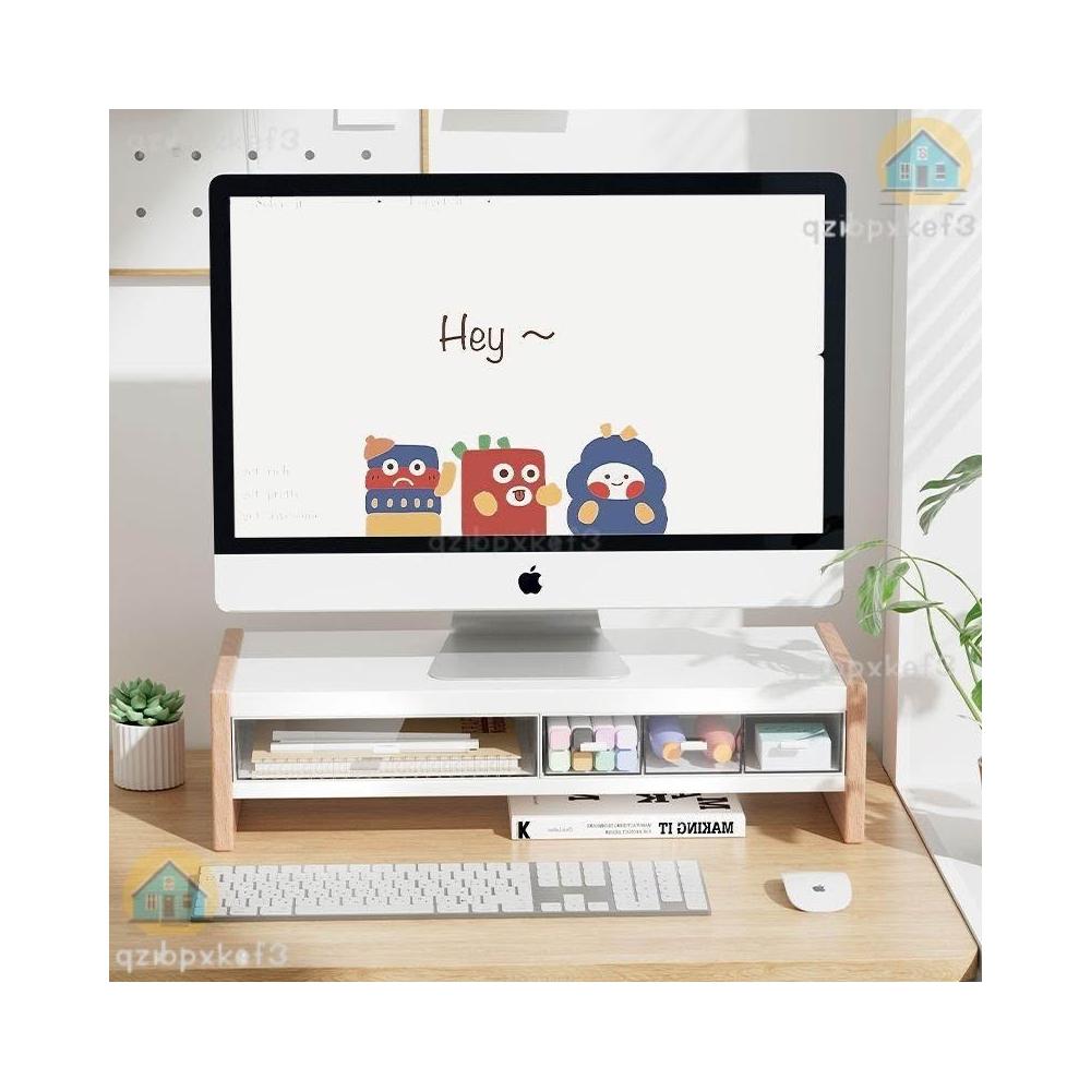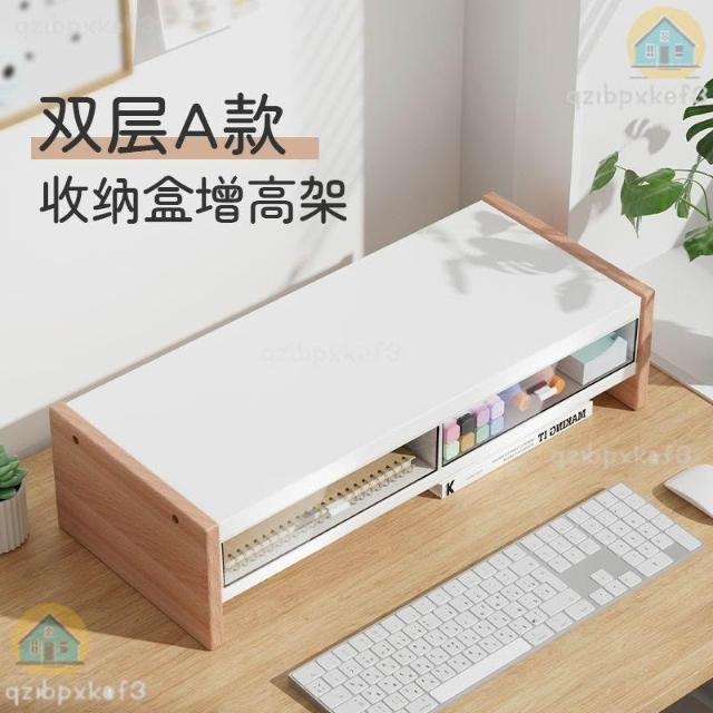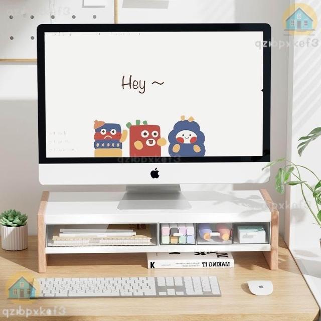 雙層小尺寸台式電腦顯示器增高架帶抽屜桌面收納儲物置物架