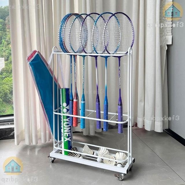 可移動羽毛球拍收納架 家用陳列架 羽毛球館裝備放置架 整理擺放展示架 帶輪球拍架 球拍放置架 移動置