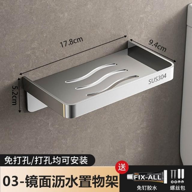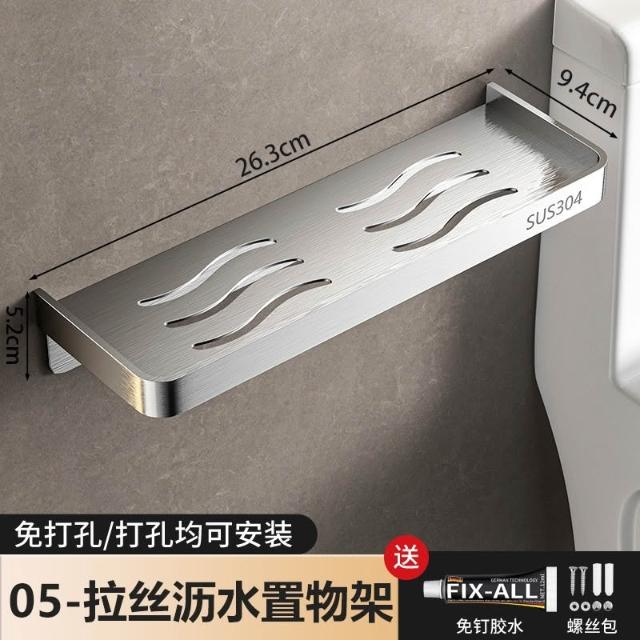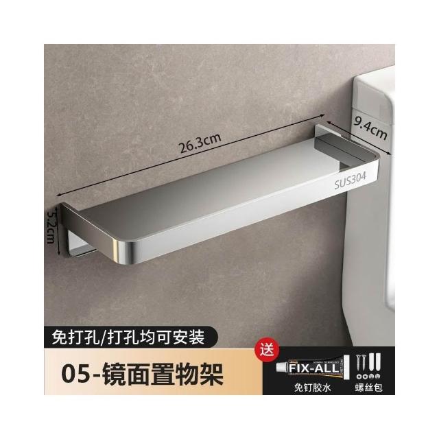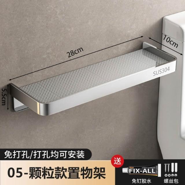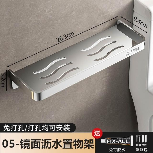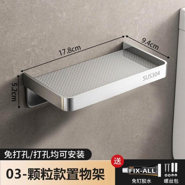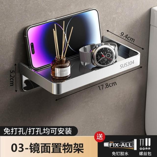304不锈钢卫生间置物架 免打孔壁掛置物架 酒店高档衛生間收納架 厕所洗手间浴室墙上收纳架 不鏽鋼收