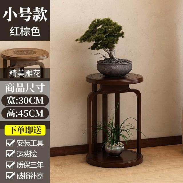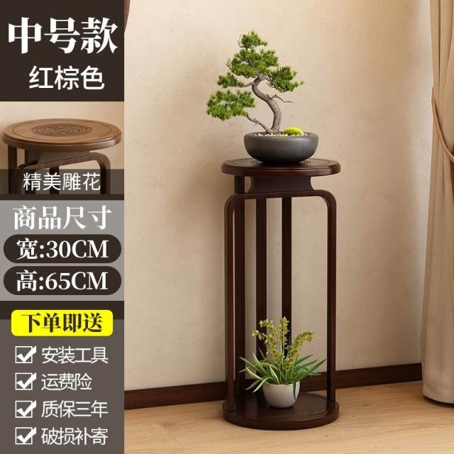 中式花台花架子客廳落地式實木圓形花台花瓶花盆架花托架