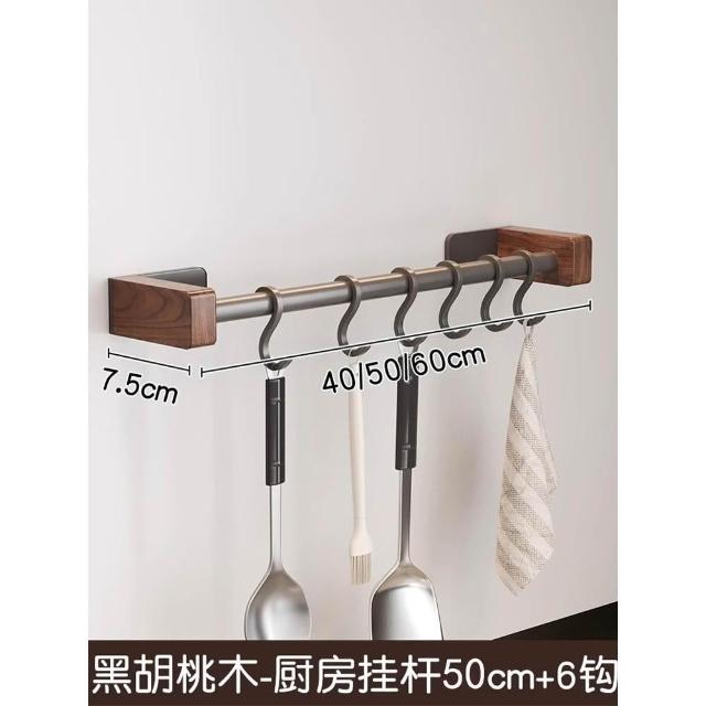 廚房掛鉤免打孔掛桿廚房置物架鍋鏟勺子掛架太空鋁排鉤收納原木風