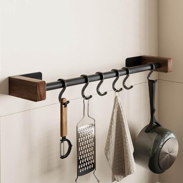 廚房掛鉤免打孔掛桿廚房置物架鍋鏟勺子掛架太空鋁排鉤收納原木風