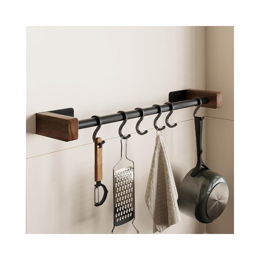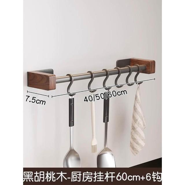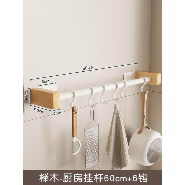 廚房掛鉤免打孔掛桿廚房置物架鍋鏟勺子掛架太空鋁排鉤收納原木風