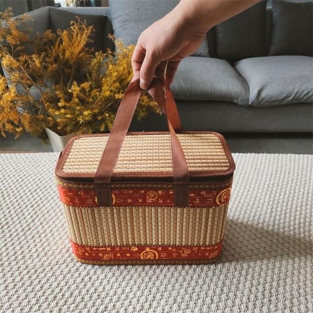 竹籃竹編包裝水果粽子食品點心竹盒年貨禮品端午粽子中秋月餅竹盒