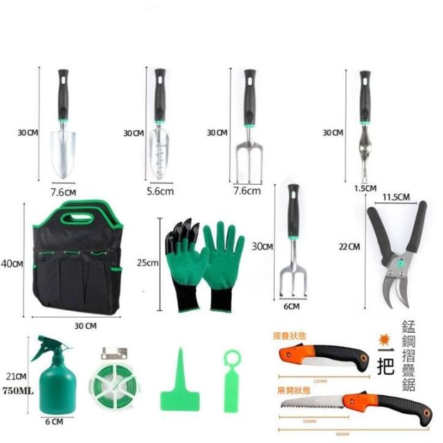 園林種花家用套裝袋子工具盒裝鏟子盆栽養花合金種菜修枝剪鋸子