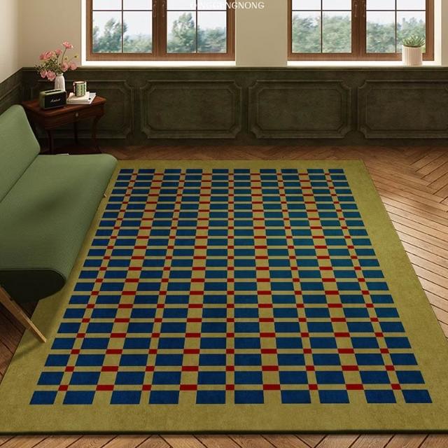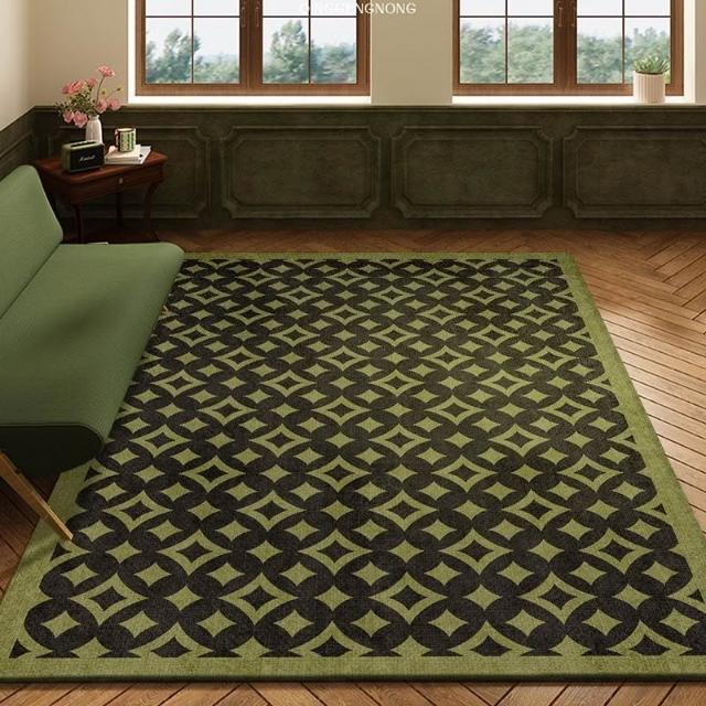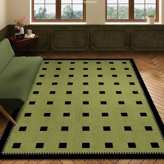 中古風客廳地毯綠色美式高級防水防污沙發茶幾毯耐髒免洗臥室地墊