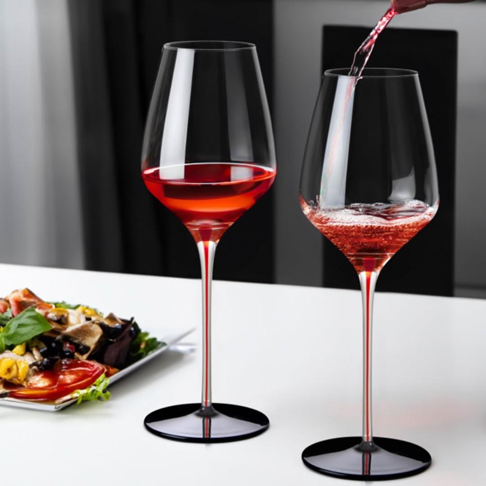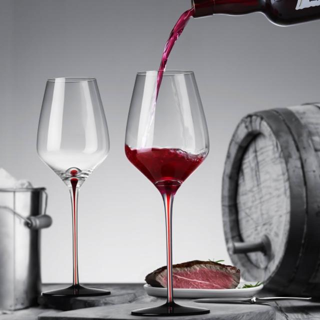 King Crystal紅酒杯 無鉛水晶玻璃酒白酒杯 水晶玻璃杯 紅桿黑底紅酒杯750ml-2入組 贈紅酒開瓶器