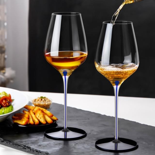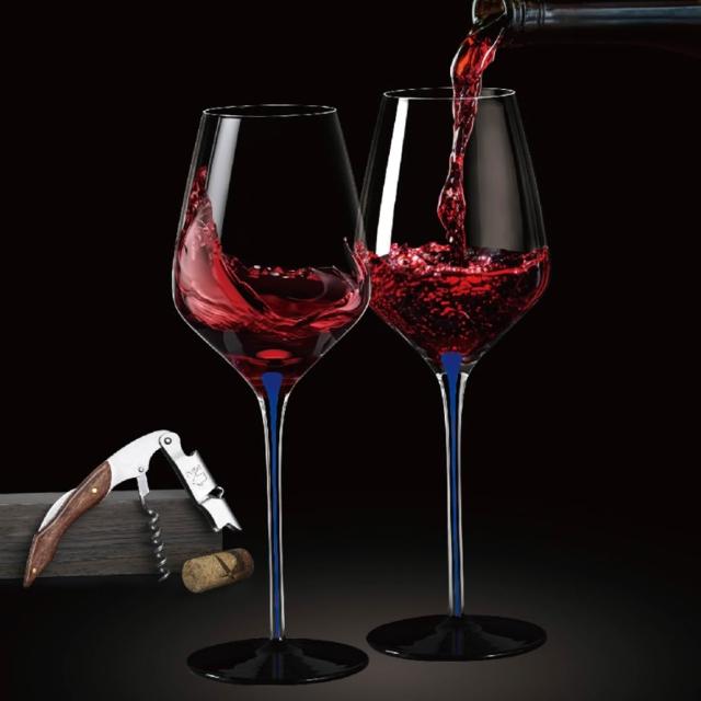 King Crystal紅酒杯 無鉛水晶玻璃酒白酒杯 水晶玻璃杯 藍桿黑底水晶玻璃杯750ml-2入組 禮盒 贈開瓶器