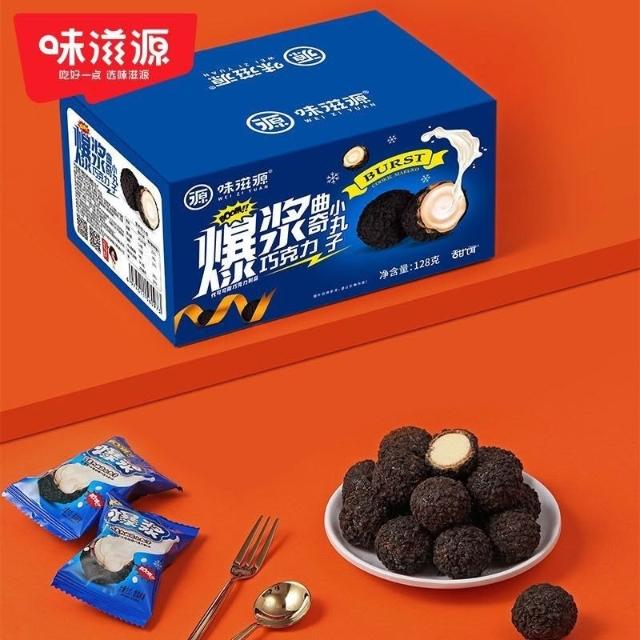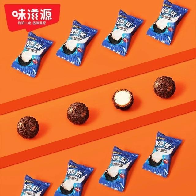 💖 味滋源爆漿曲奇小丸子165g餅乾網紅爆款零食夾心脆巧克力休閒食品