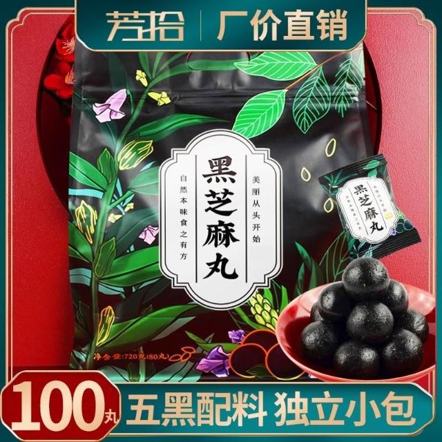 💖 黑枸杞黑桑葚五黑蜂蜜黑芝麻丸手工五穀芝麻球零食黑發卽食